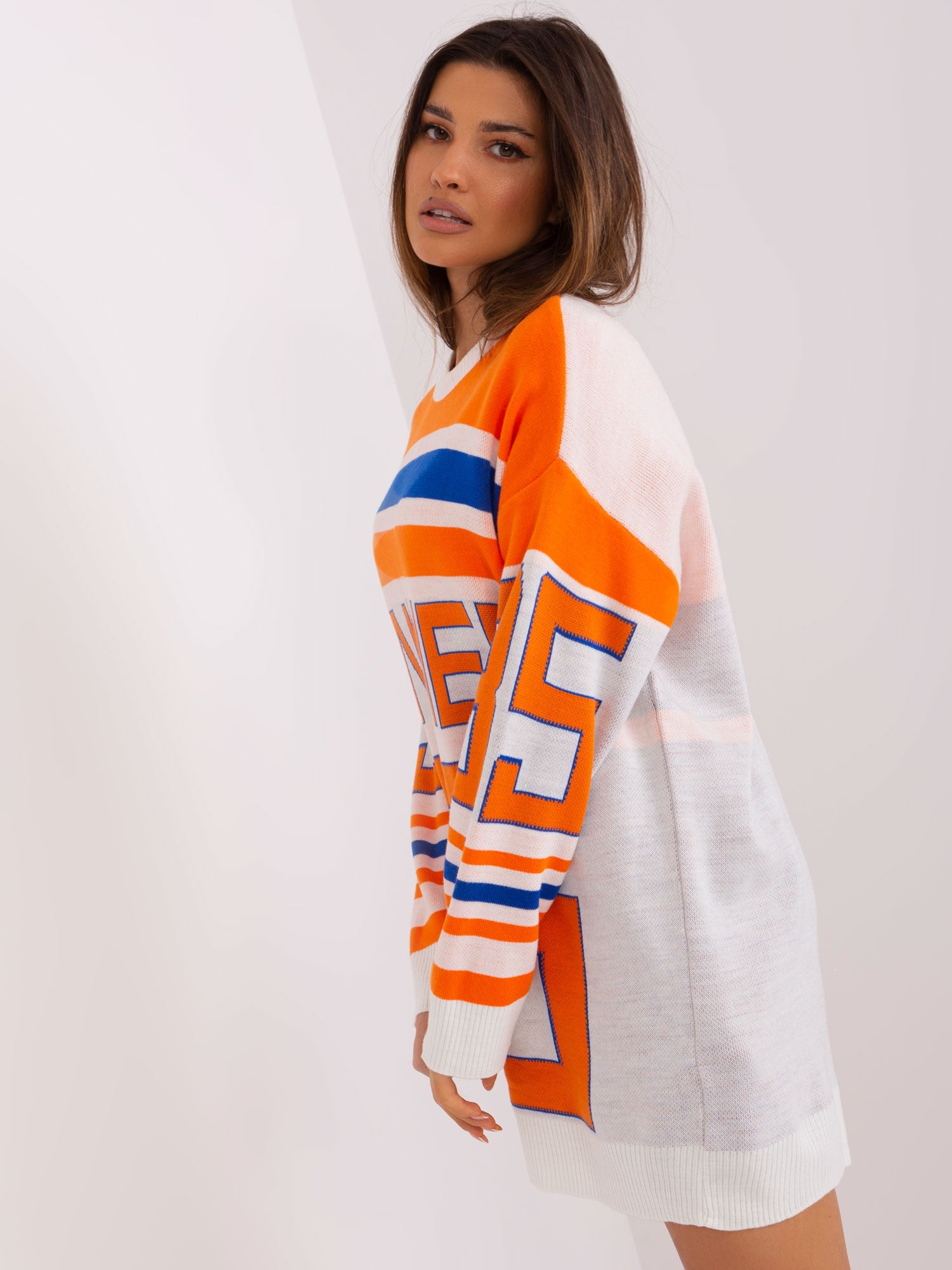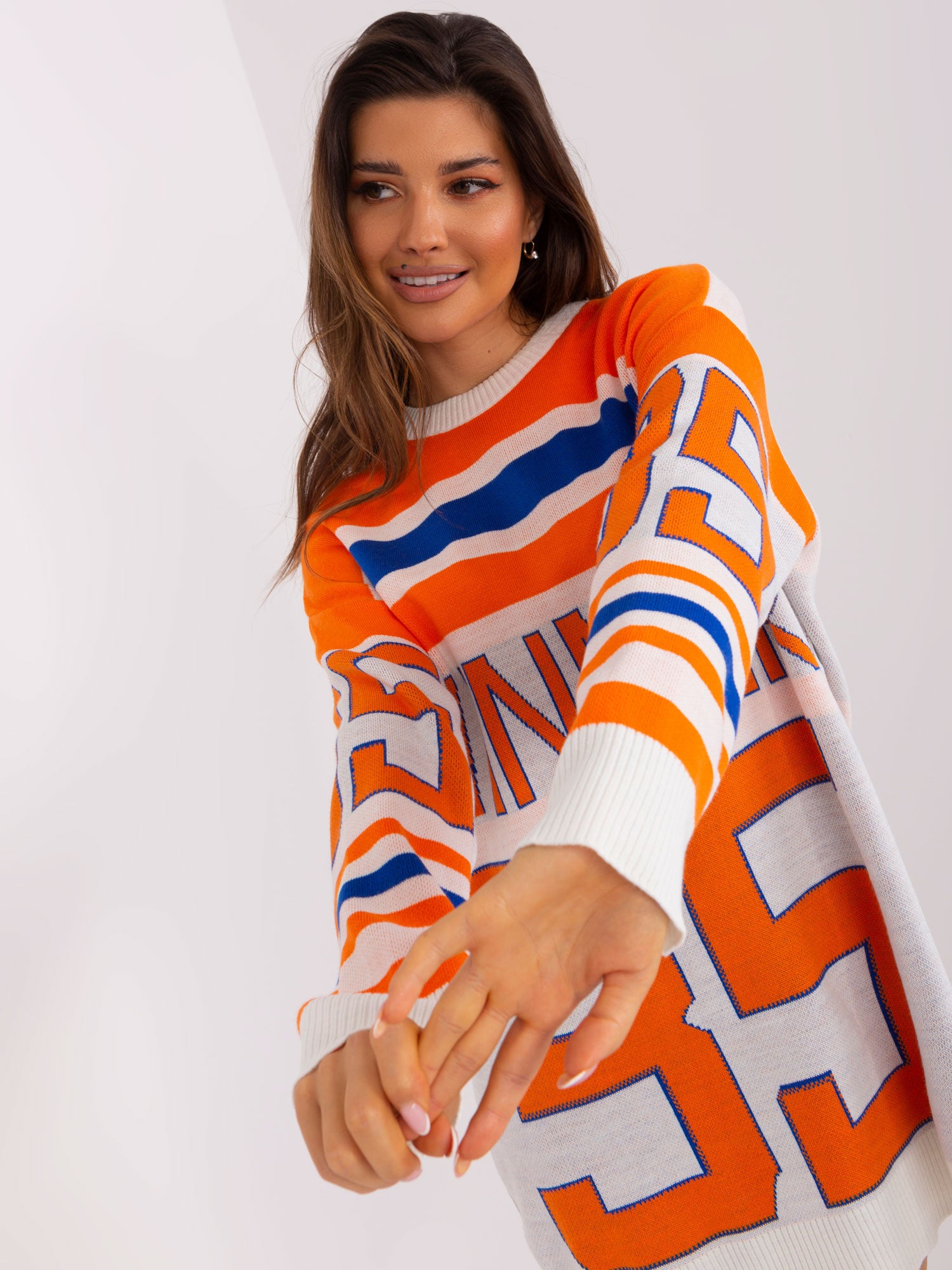 Pomarańczowy długi sweter oversize .