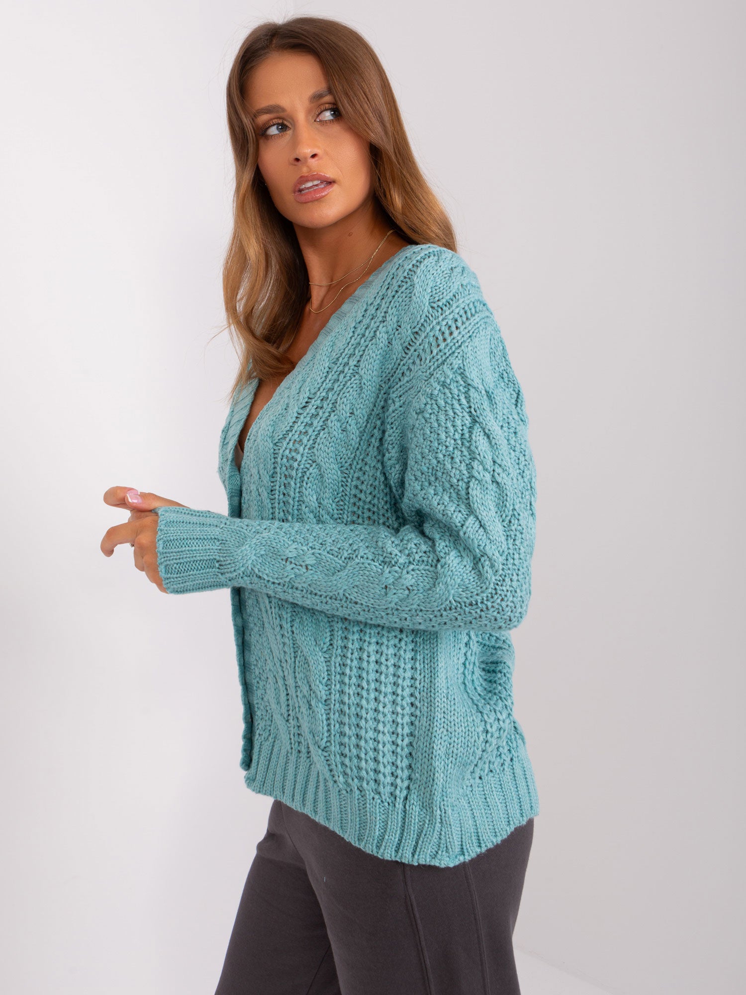 Ciemnomiętowy sweter rozpinany z guzikami .