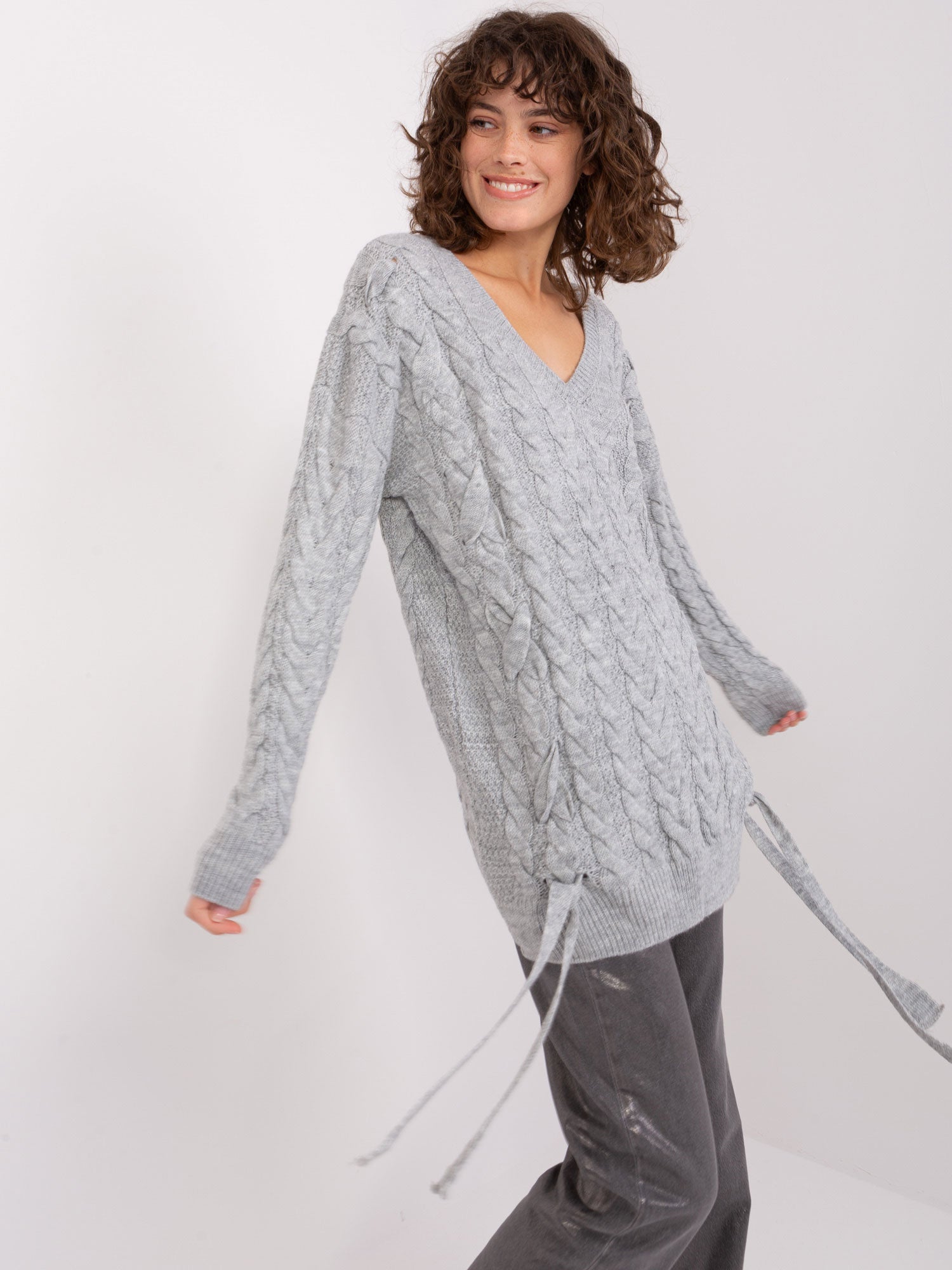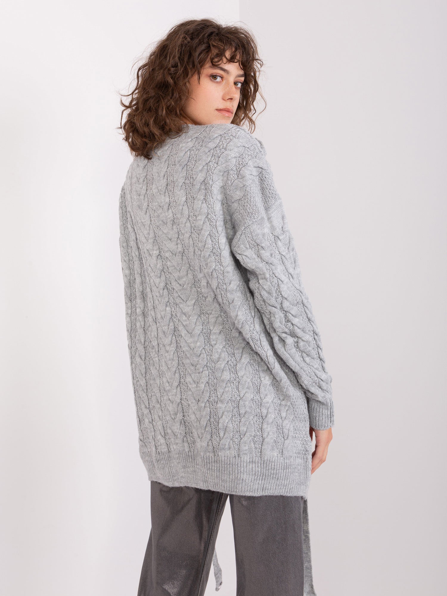 Wymiary swetra w rozmiarze one size mierzone na płasko: szerokość pod pachami - 75 cm, długość rękawa - 64 cm, długość całkowita - 81 cm.