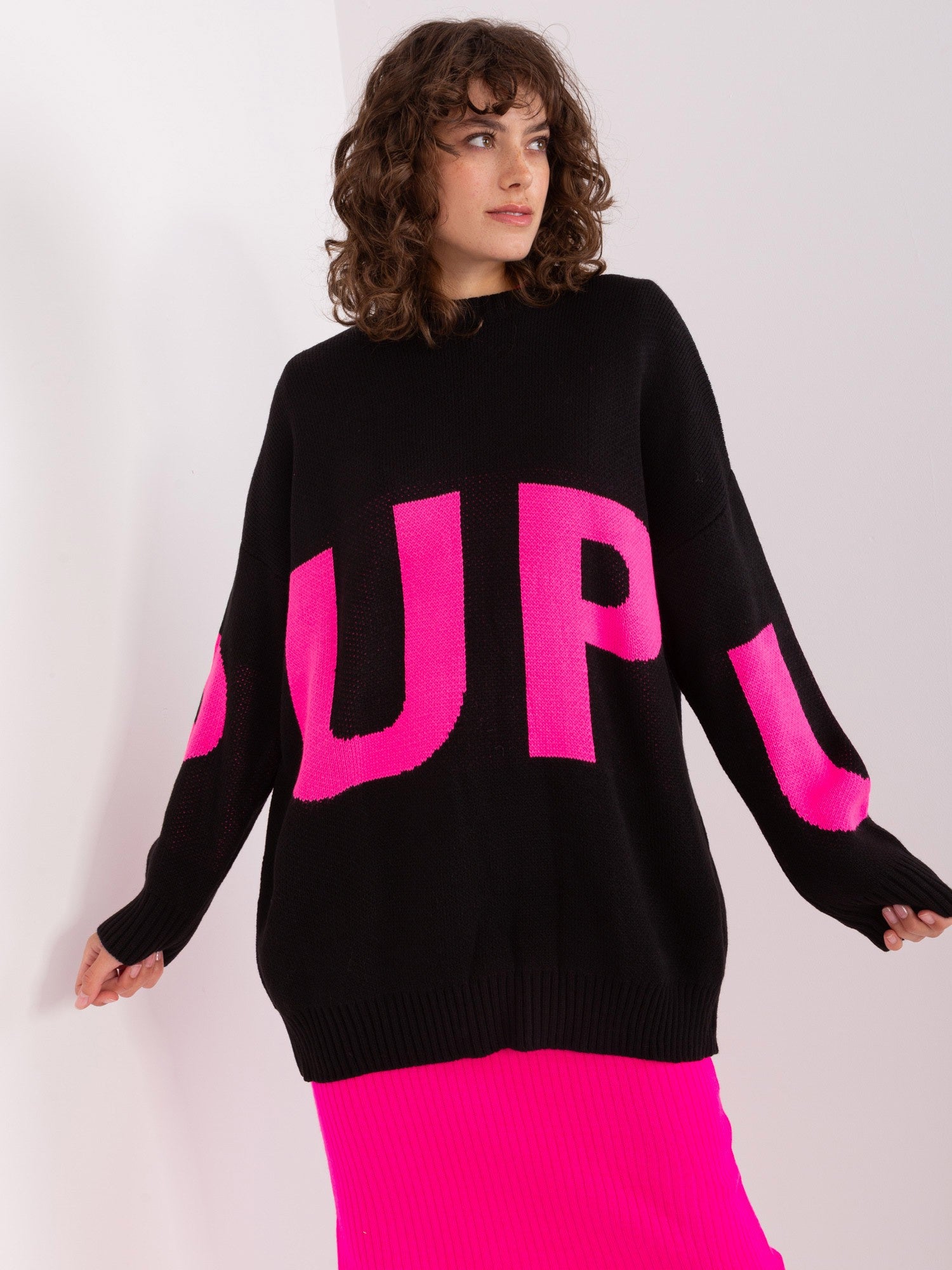 Sweter-BA-SW-8060.05P-czarno-różowy