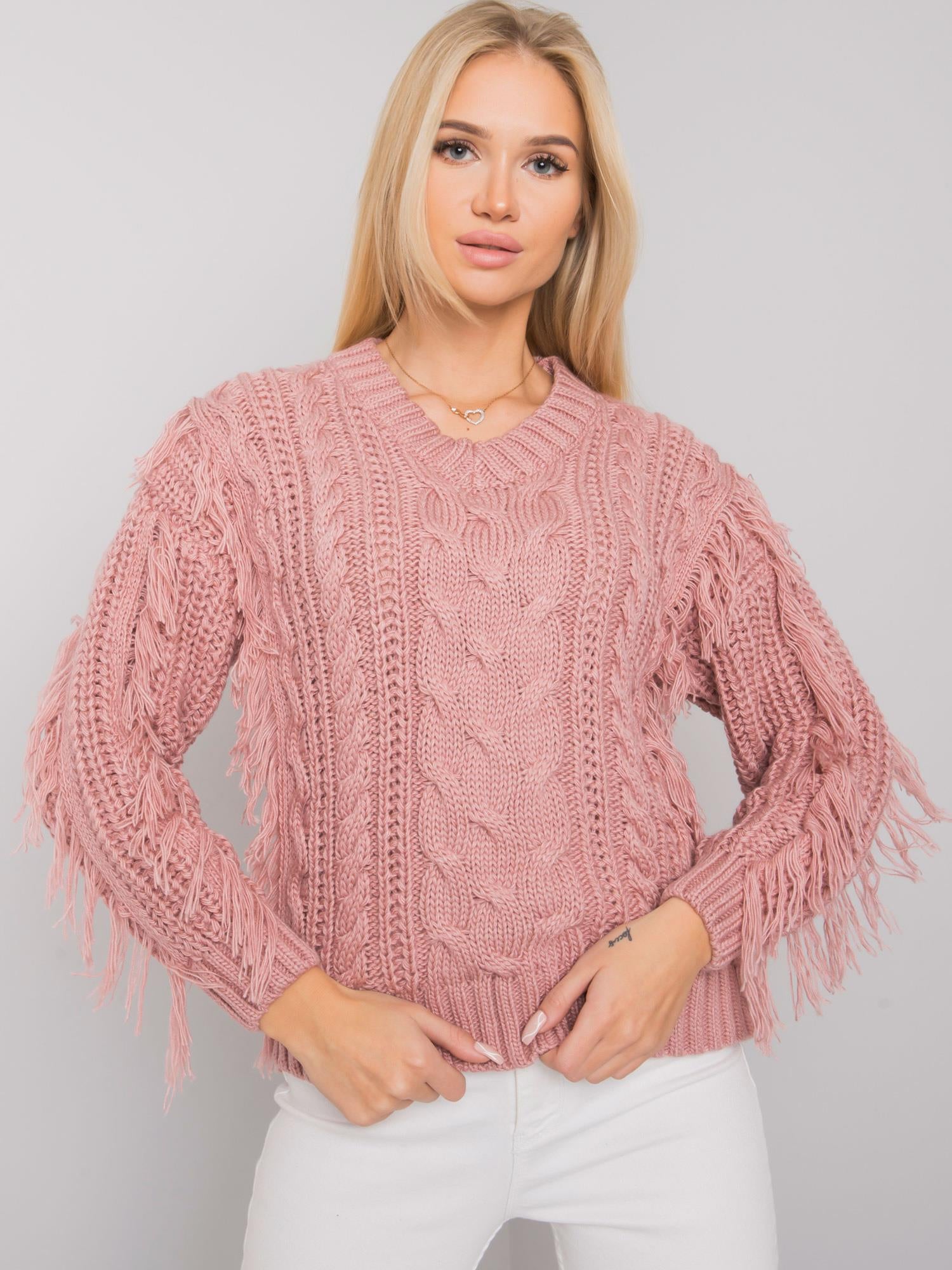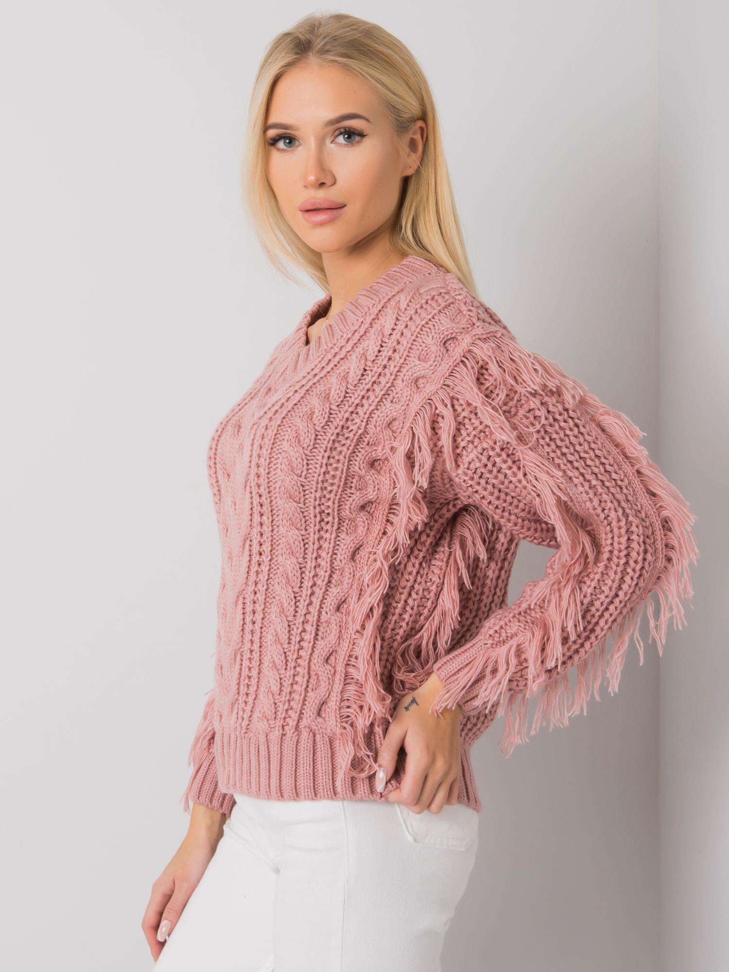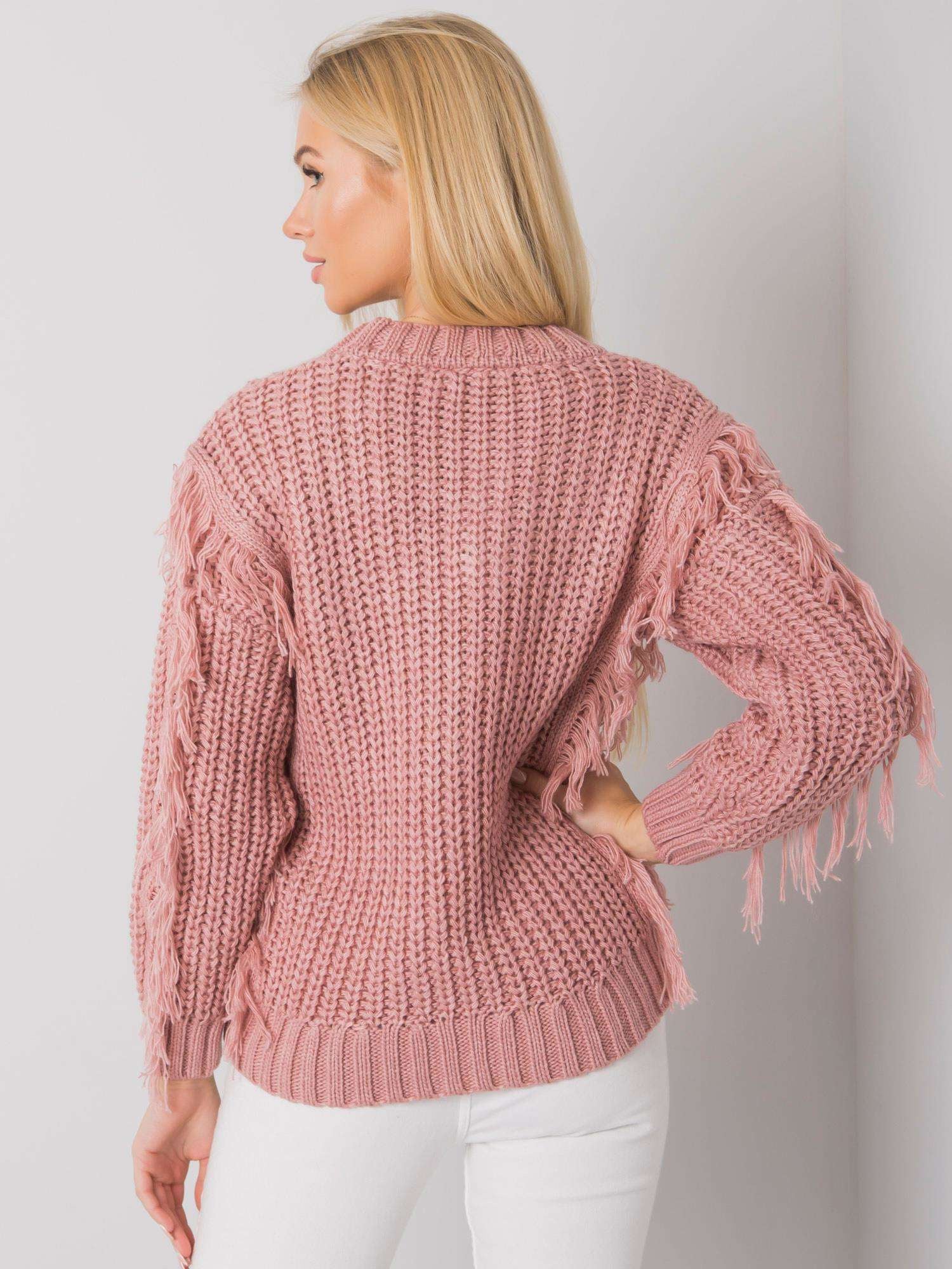 RUE PARIS Brudnoróżowy sweter z frędzlami.