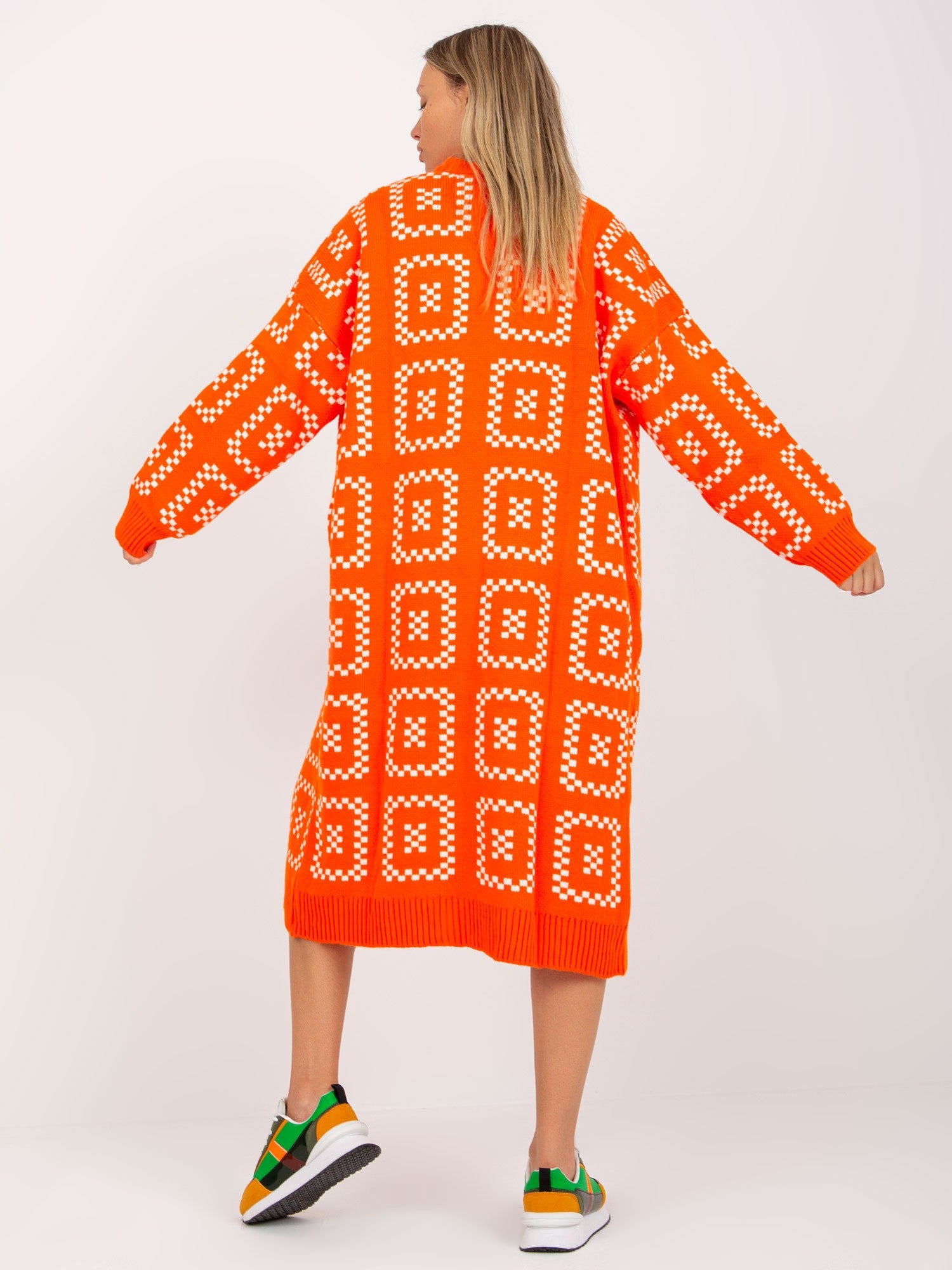 Pomarańczowy luźny kardigan we wzory RUE PARIS .