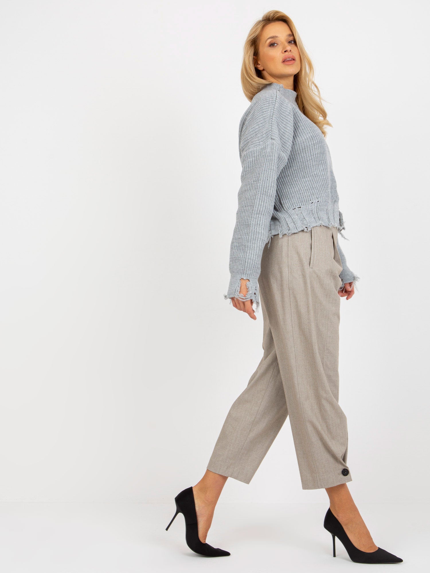 Szary luźny sweter asymetryczny z dziurami RUE PARIS .