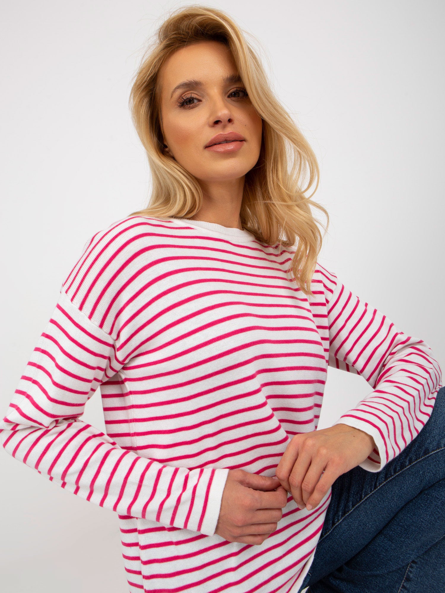 Biało-różowy sweter klasyczny w paski z wełną RUE PARIS .
