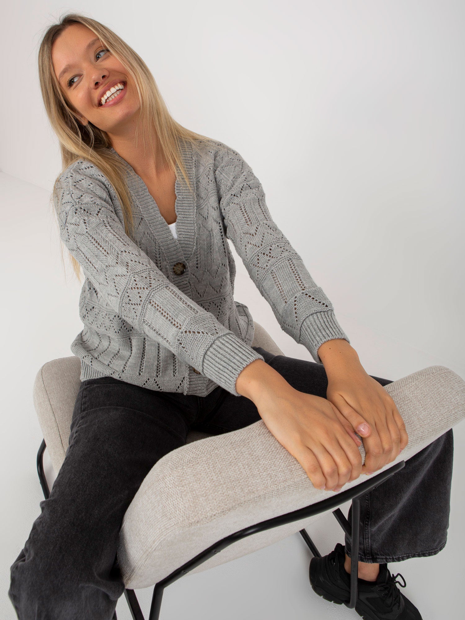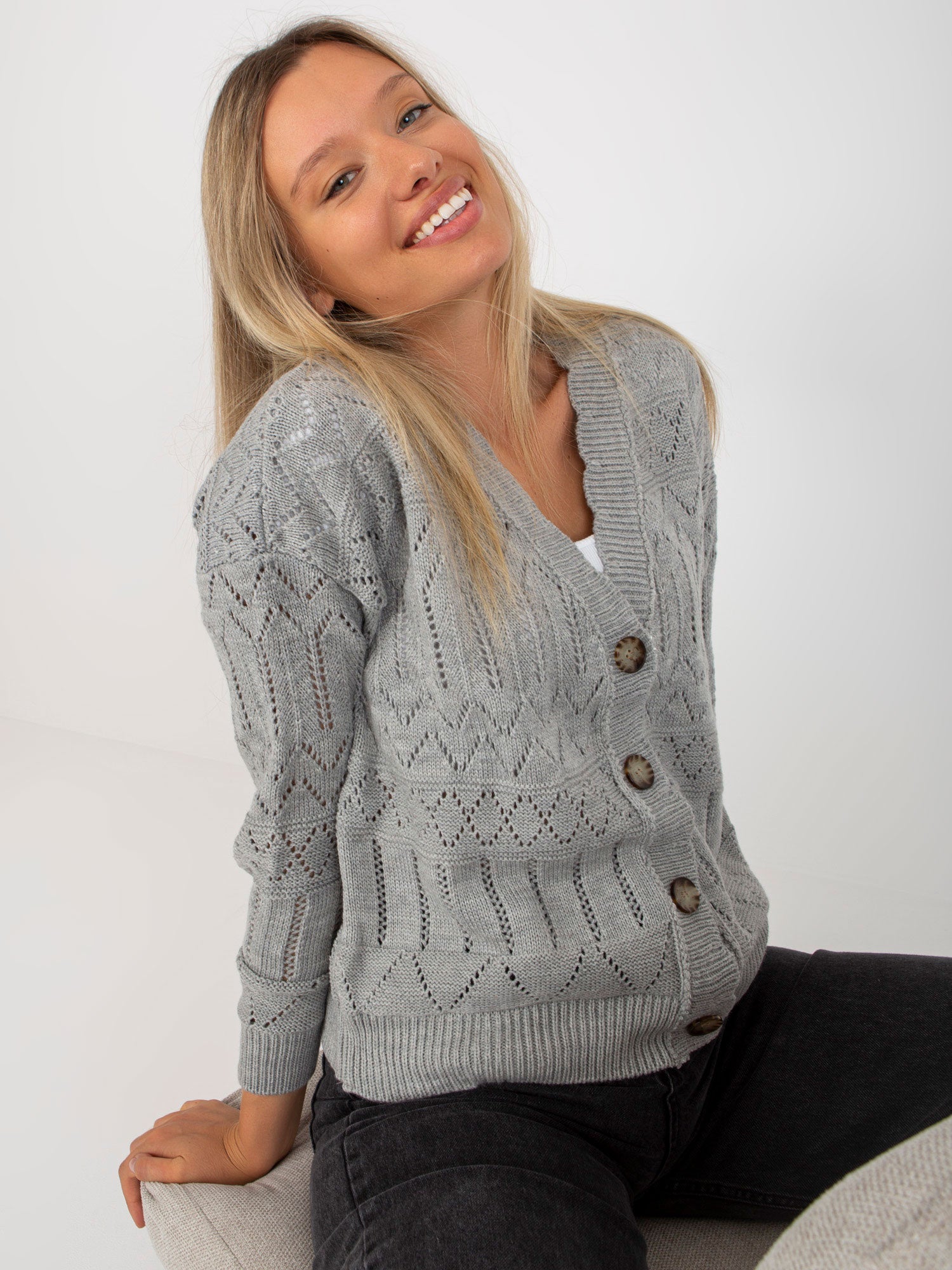 Szary ażurowy sweter letni z zapięciem na guziki RUE PARIS .