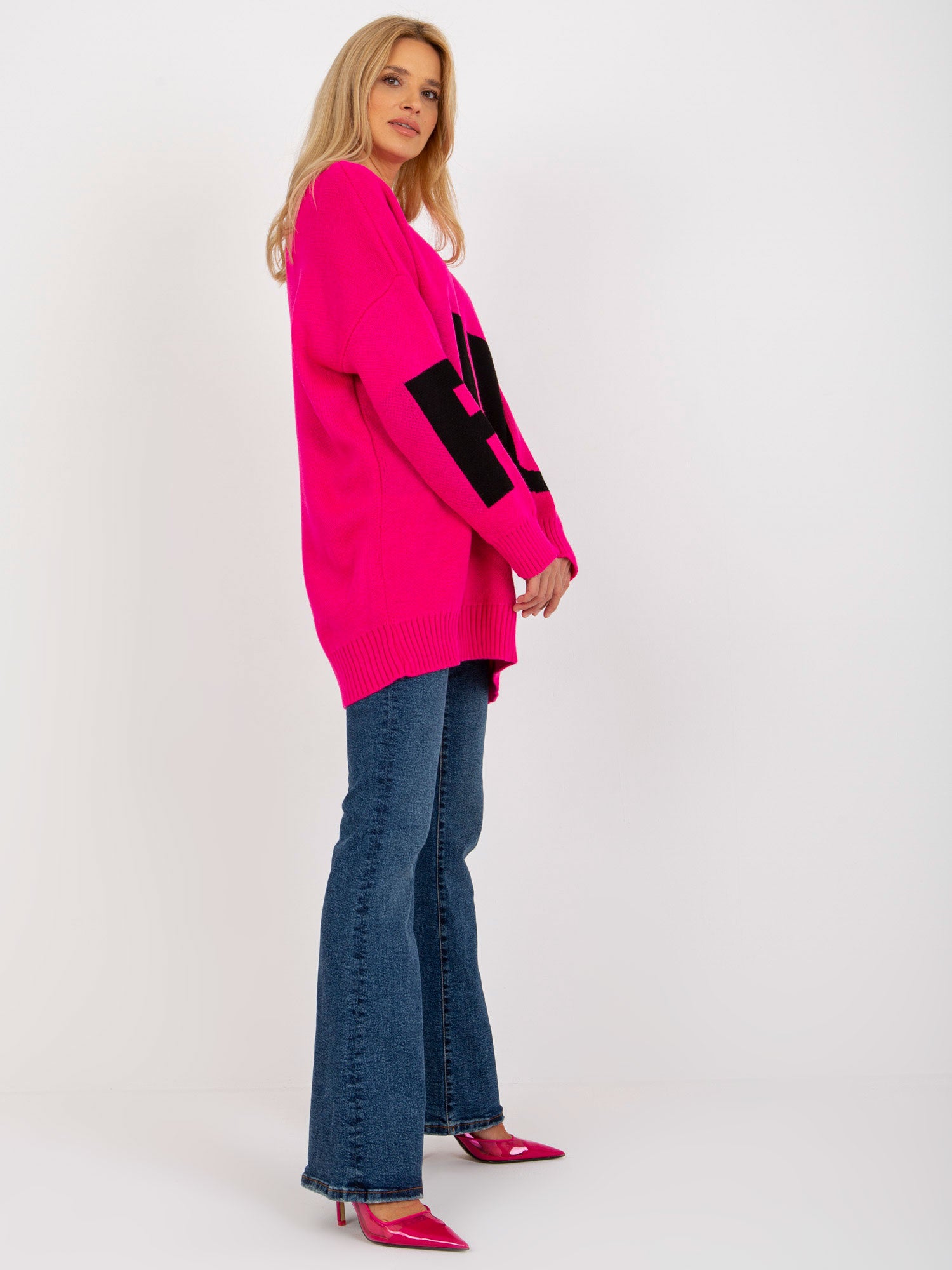 Fuksjowy długi sweter oversize z napisem RUE PARIS .