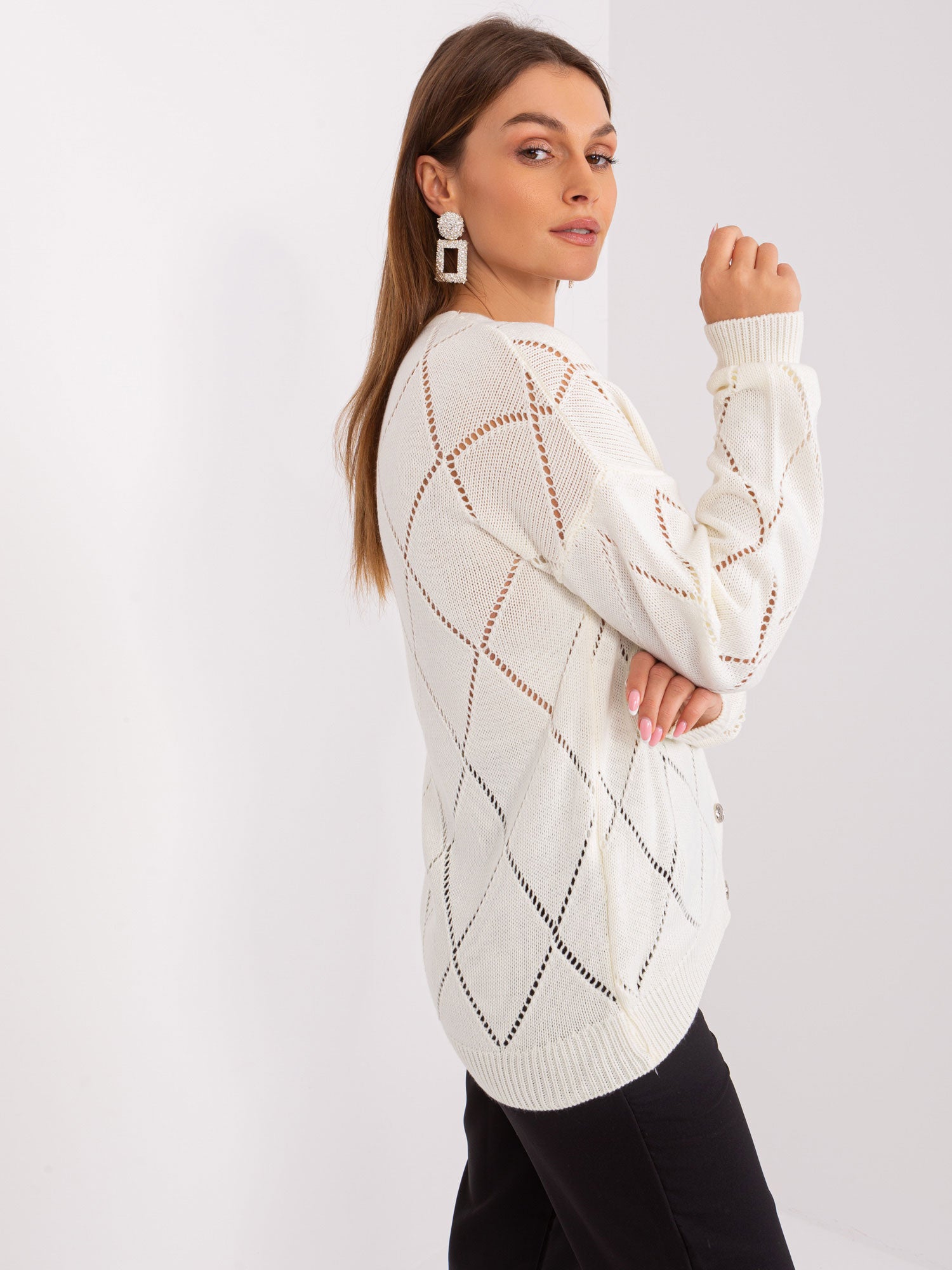 Wymiary swetra w rozmiarze one size mierzone na płasko: szerokość pod pachami - 53 cm, długość rękawa - 53 cm, długość całkowita - 62 cm.