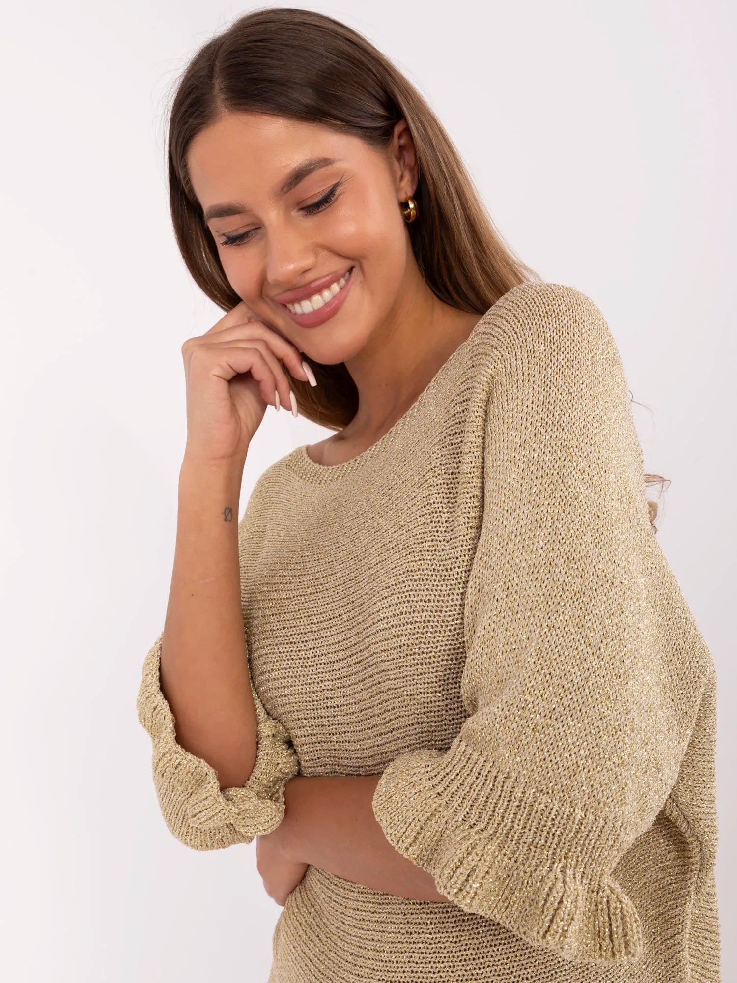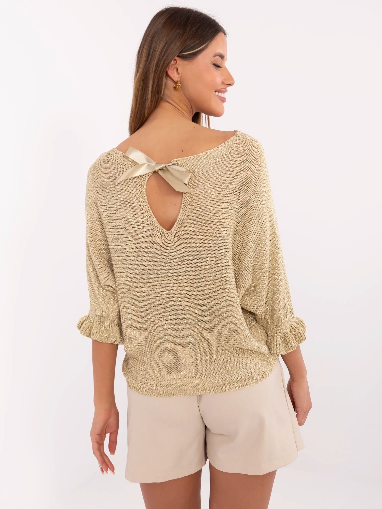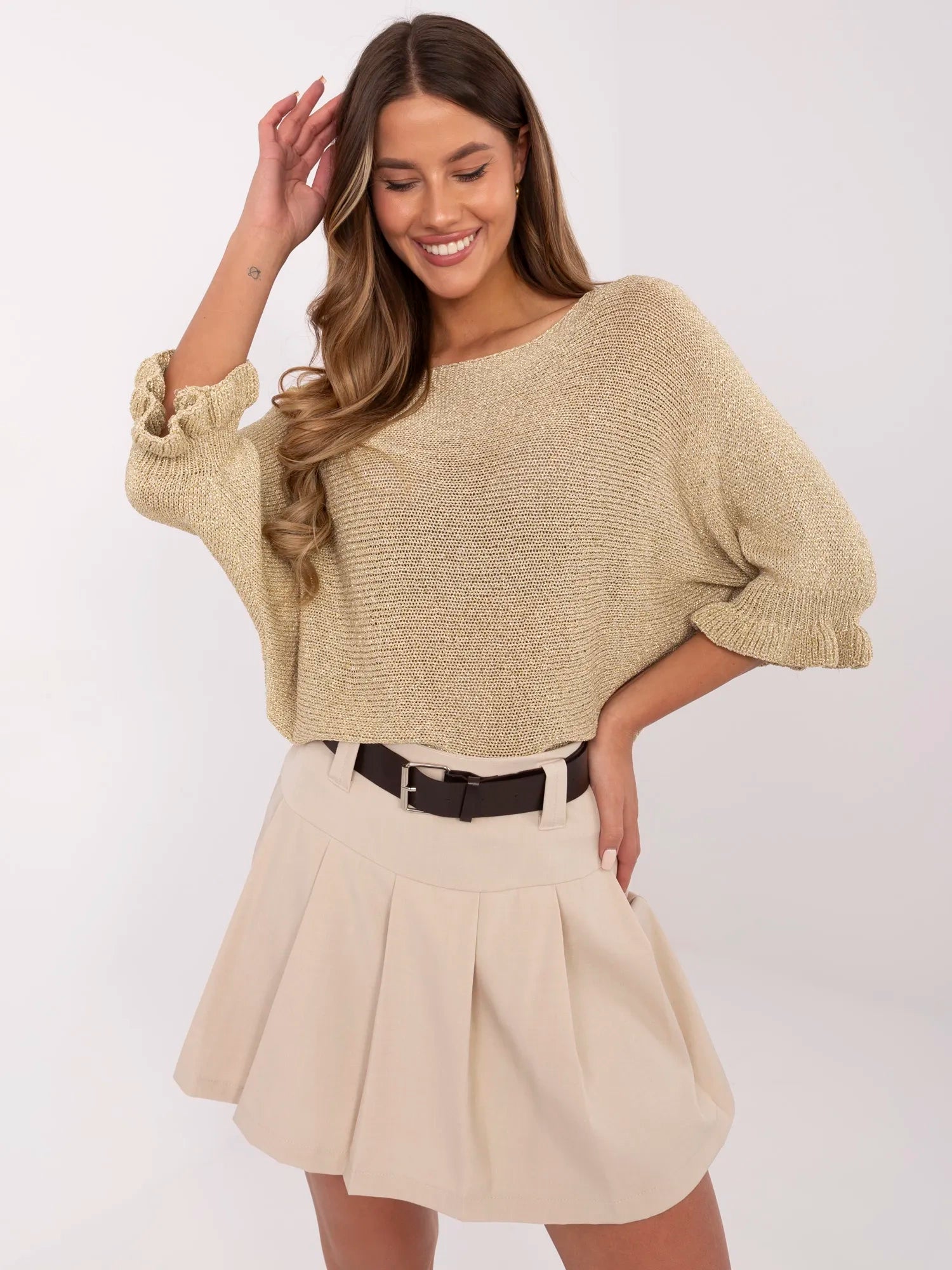 Wymiary swetra w rozmiarze one size mierzone na płasko: szerokość pod pachami - 66 cm, długość rękawa - 22 cm (od pachy), szerokość w biodrach - 47 cm (na płasko), szerokość w biodrach - 58 cm (po rozciągnięciu), długość całkowita - 55 cm (przód), długość całkowita - 60 cm (tył).