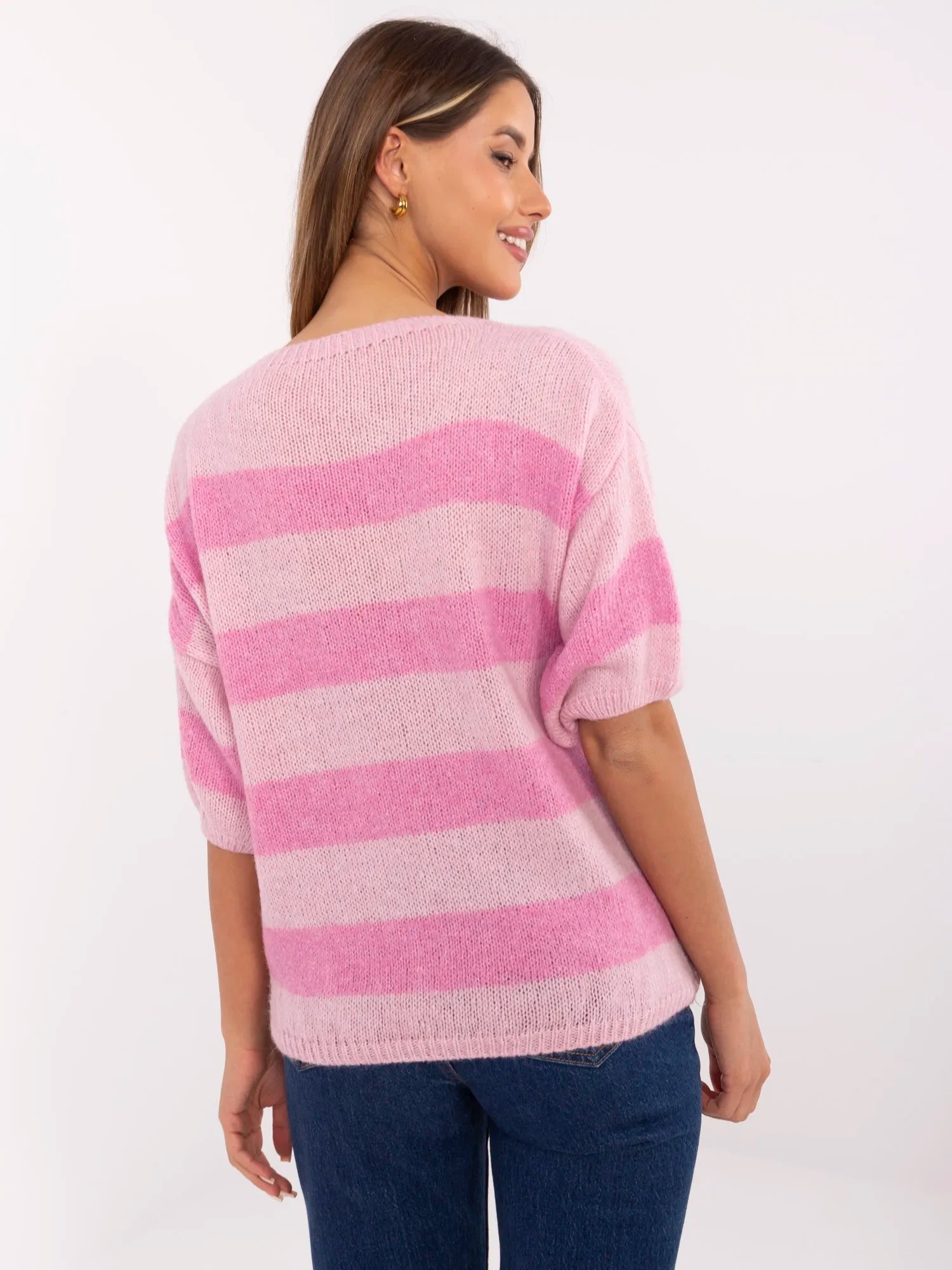 Wymiary swetra w rozmiarze one size mierzone na płasko: szerokość pod pachami - 58 cm, długość rękawa - 27 cm (od szwu), szerokość w biodrach - 37 cm (na płasko), szerokość w biodrach - 80 cm (po rozciągnięciu), długość całkowita - 62 cm.