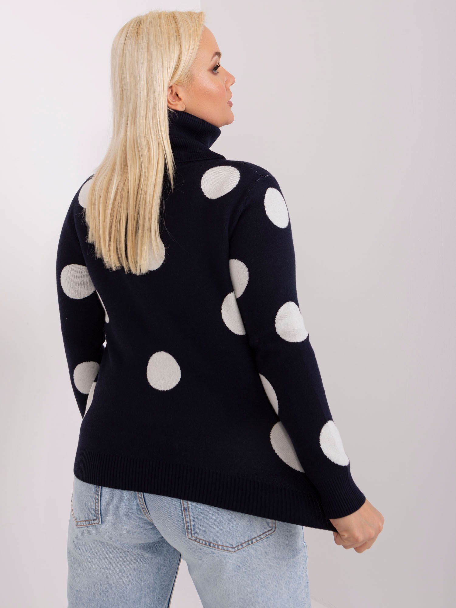 Wymiary swetra w rozmiarze XL/XXL mierzone na płasko: szerokość pod pachami - 51 cm, długość rękawa - 58 cm, długość całkowita - 60 cm.