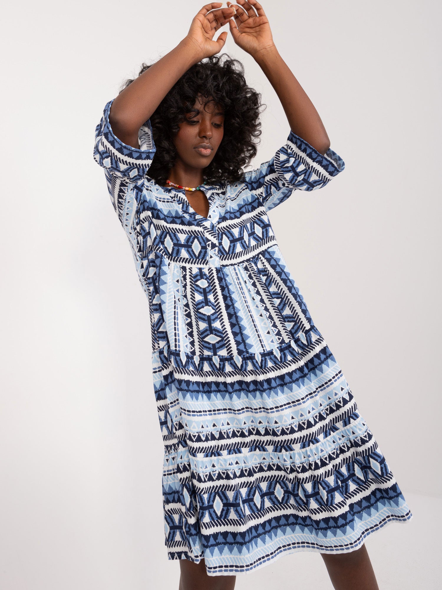 Wymiary sukienki w rozmiarze S mierzone na płasko: szerokość pod pachami - 45 cm, długość rękawa - 42 cm, długość całkowita - 94 cm.