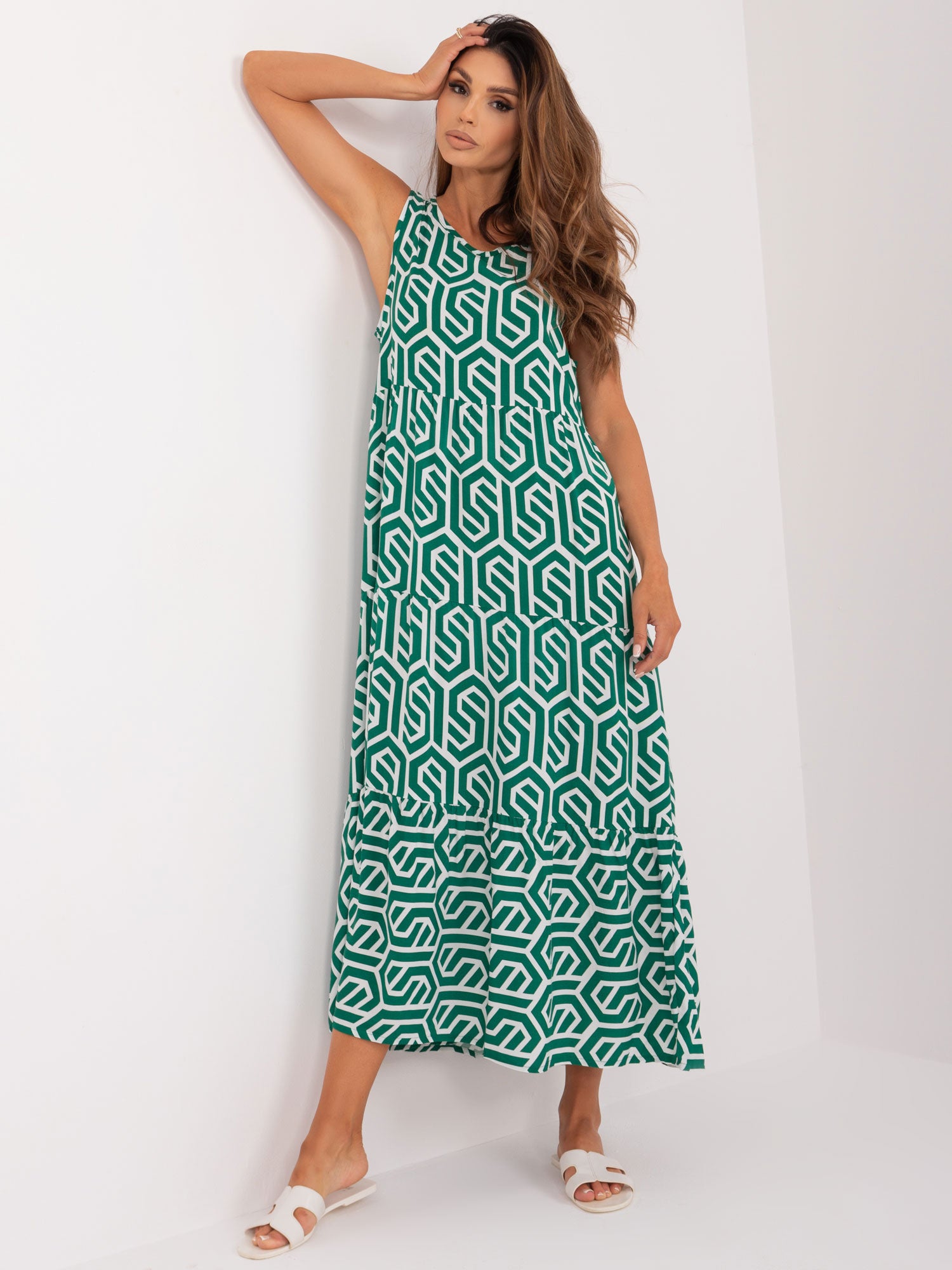 Wymiary sukienki w rozmiarze S mierzone na płasko: szerokość pod pachami - 52 cm, długość całkowita - 132 cm.