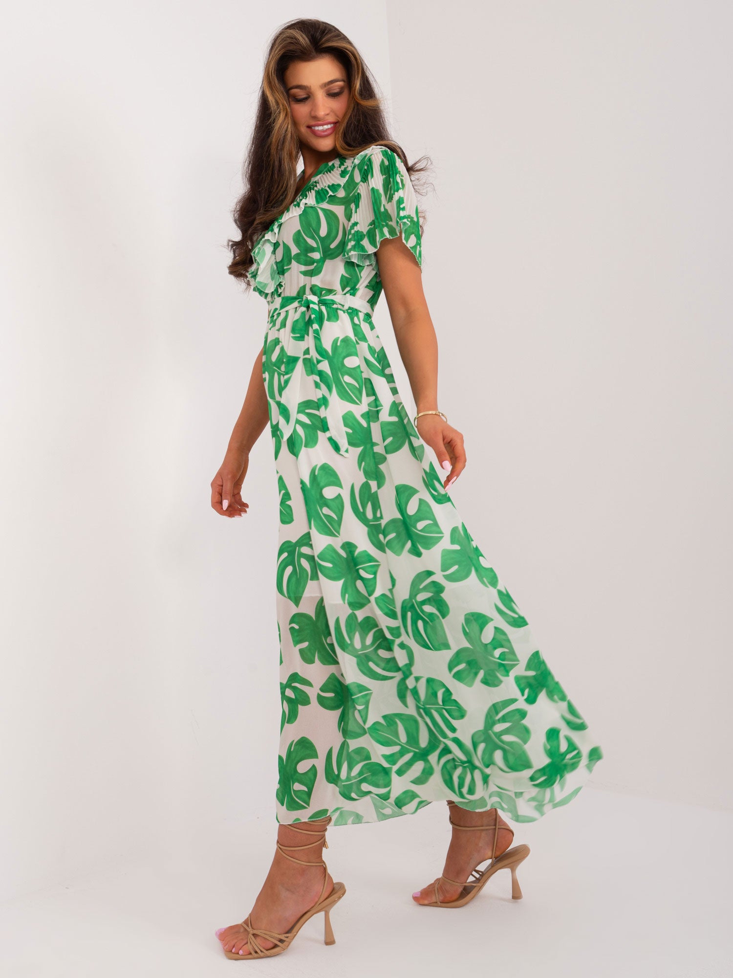 Wymiary sukienki w rozmiarze one size mierzone na płasko: szerokość pod pachami - 50 cm, długość całkowita - 134 cm.