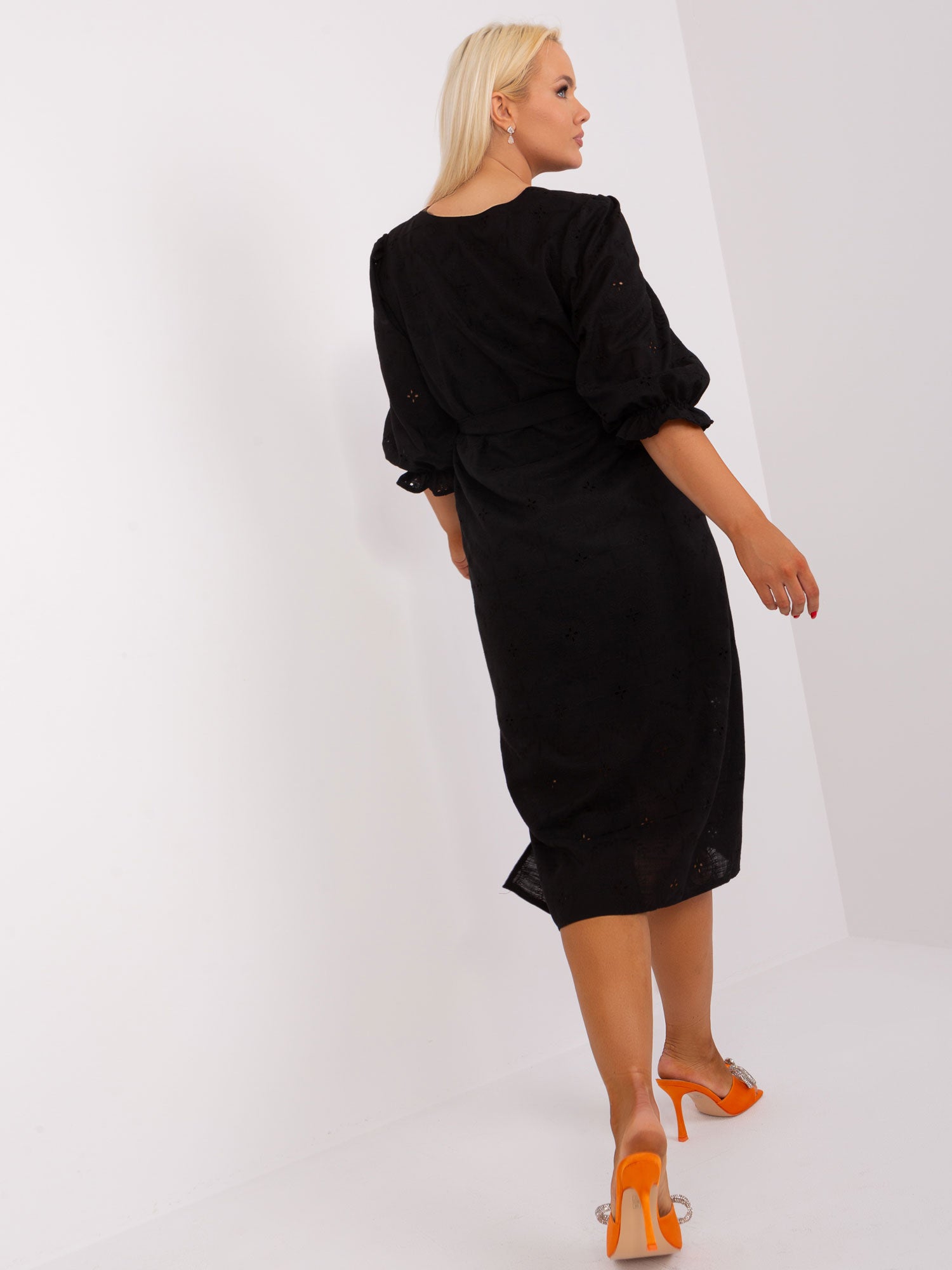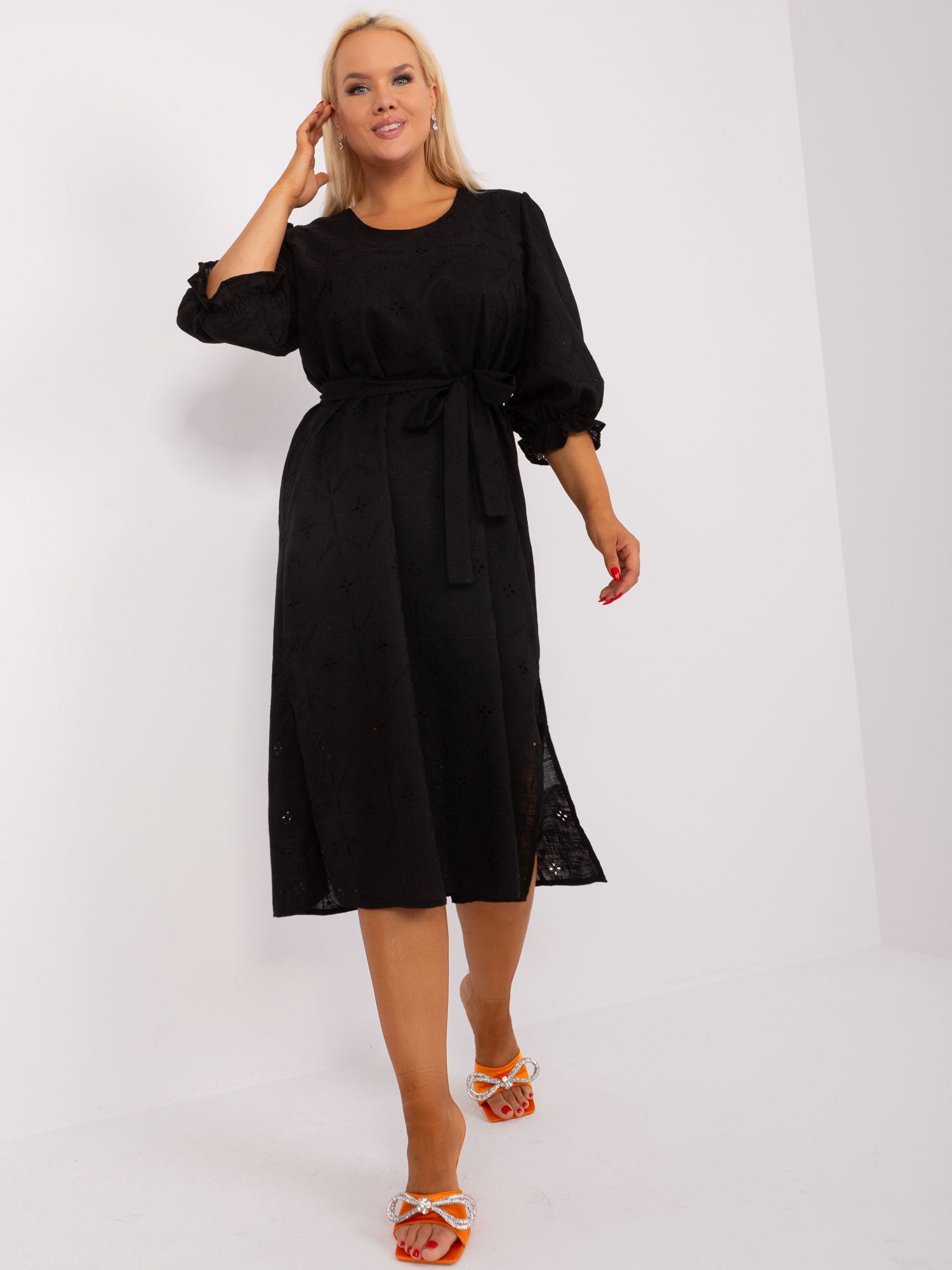 Wymiary sukienki w rozmiarze 46 mierzone na płasko: szerokość pod pachami - 57 cm, długość całkowita - 117 cm, długość rękawa - 44 cm.