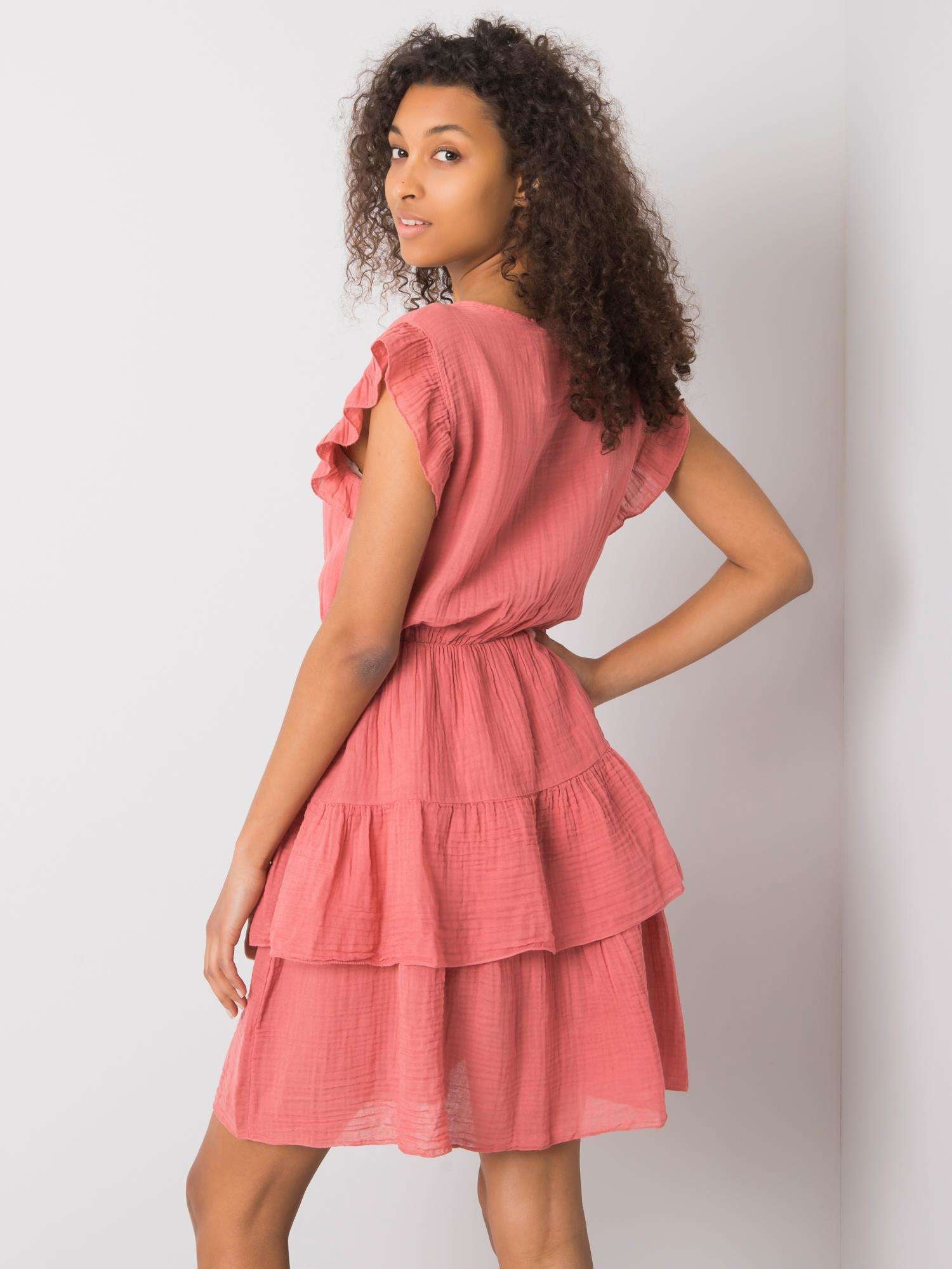 OCH BELLA Różowa lekka sukienka z falbaną.