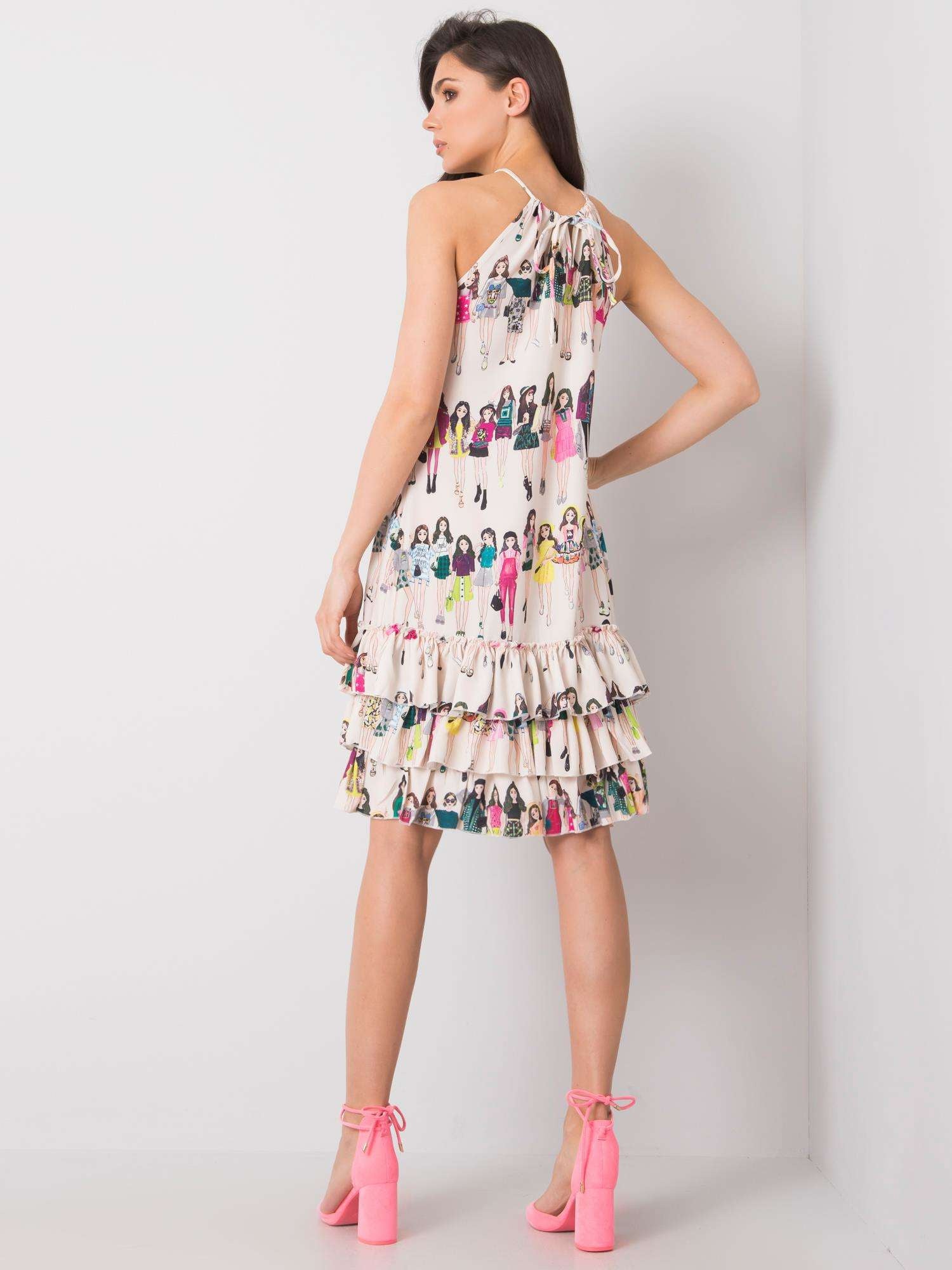 RUE PARIS Jasnobeżowa sukienka z falbaną.