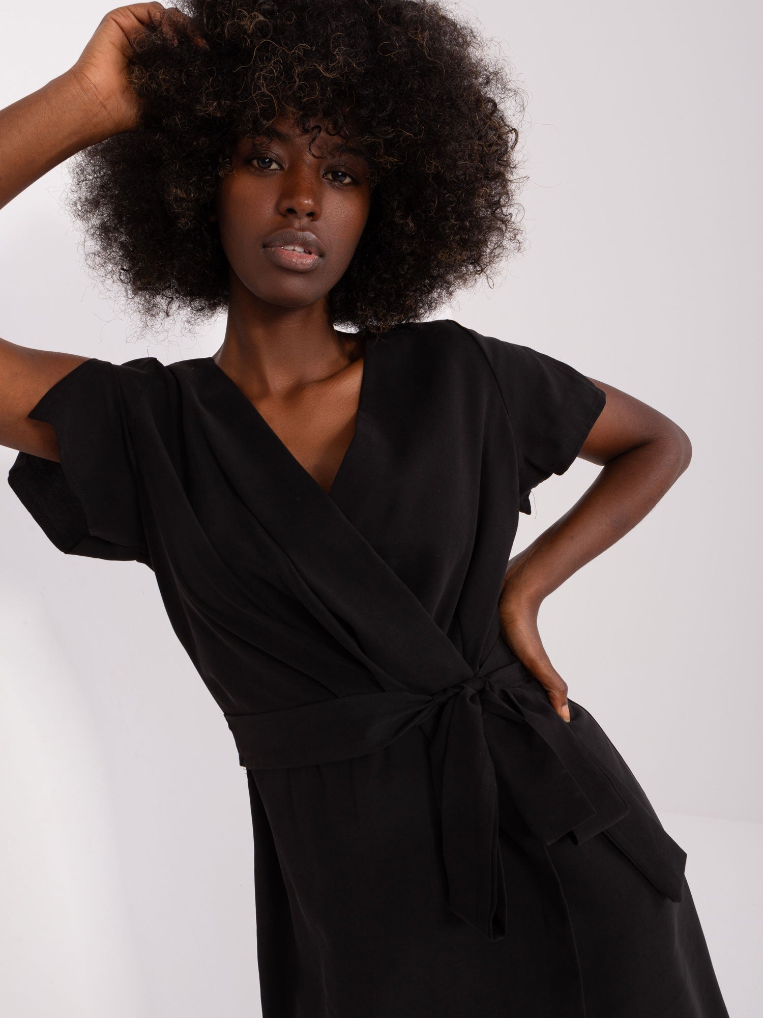 Czarna kopertowa sukienka z wiskozą ZULUNA .