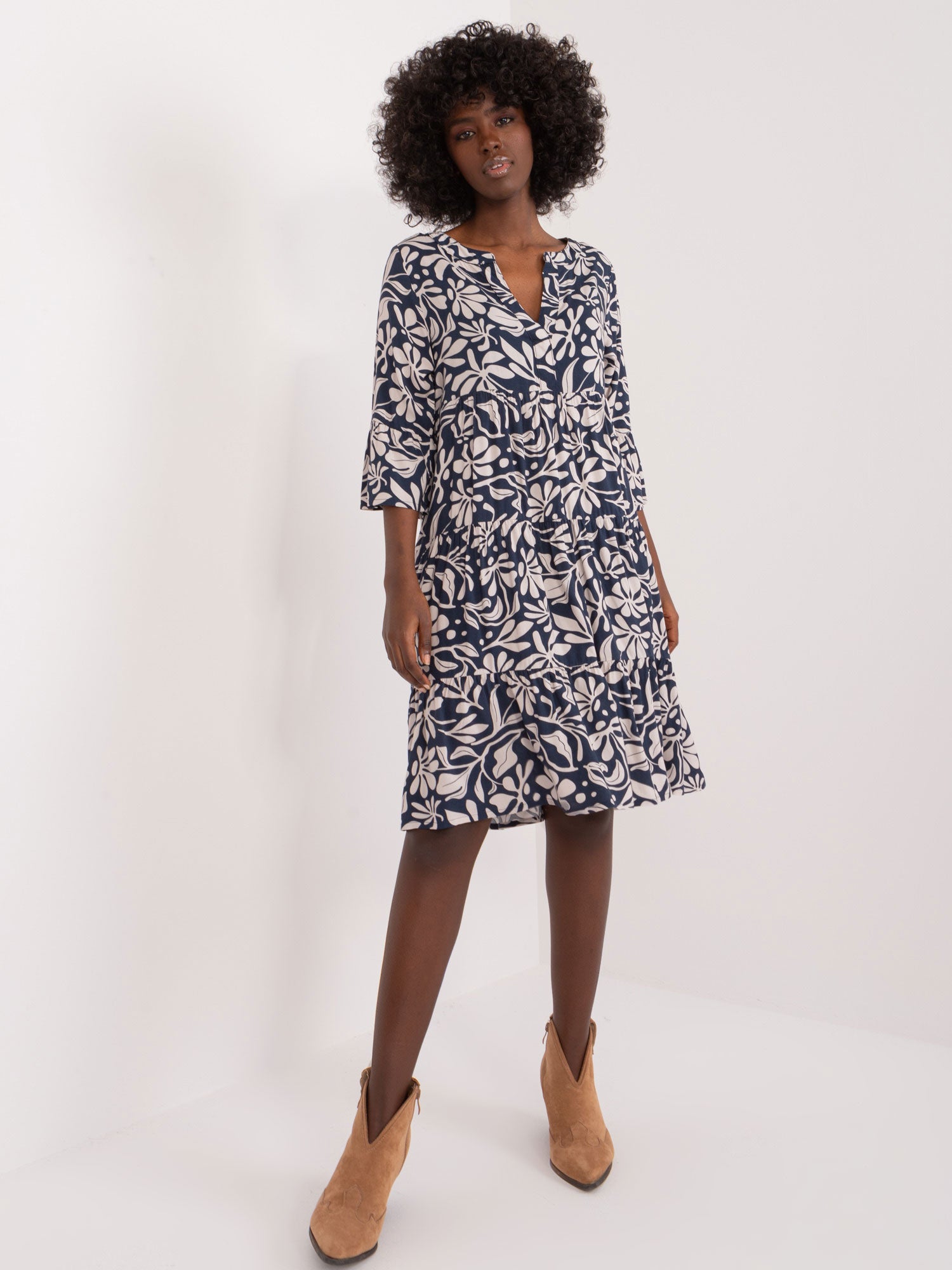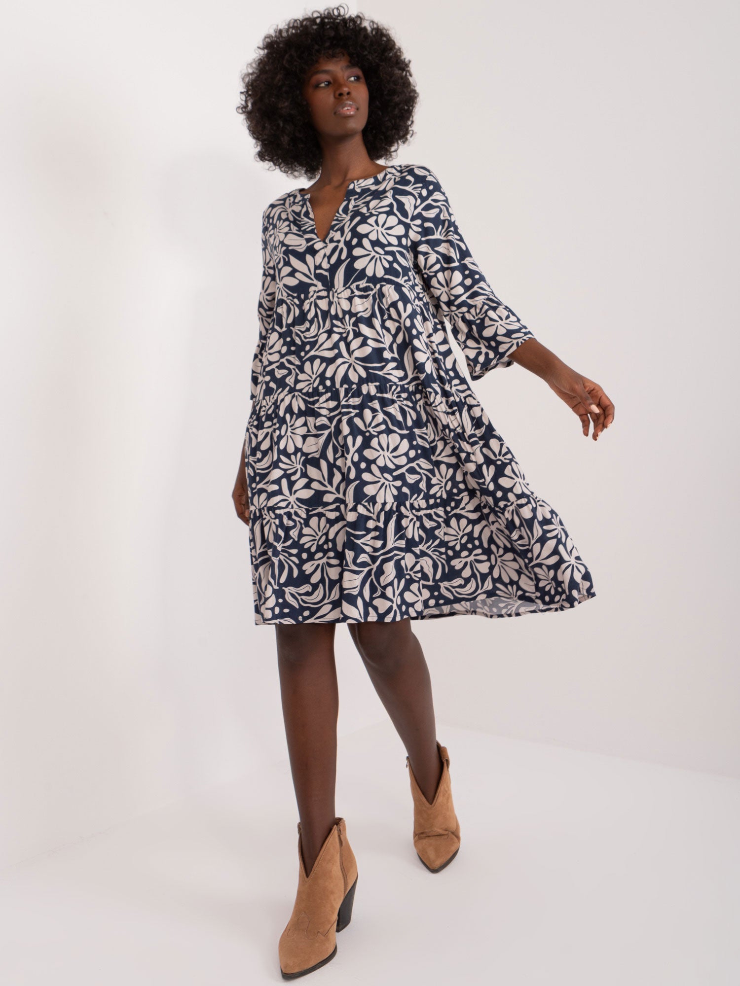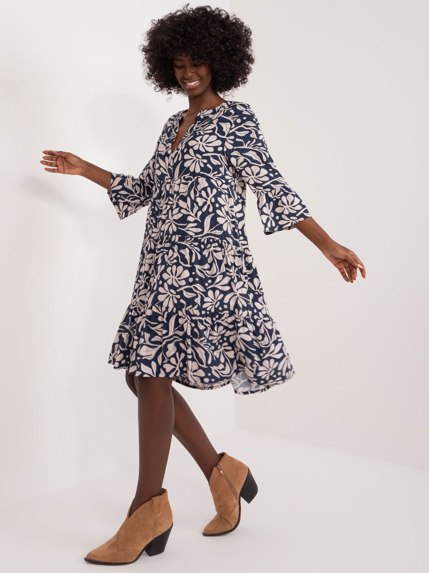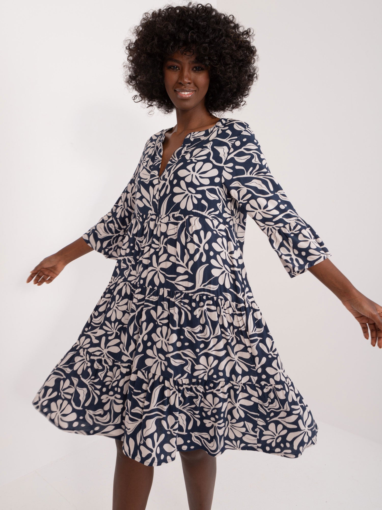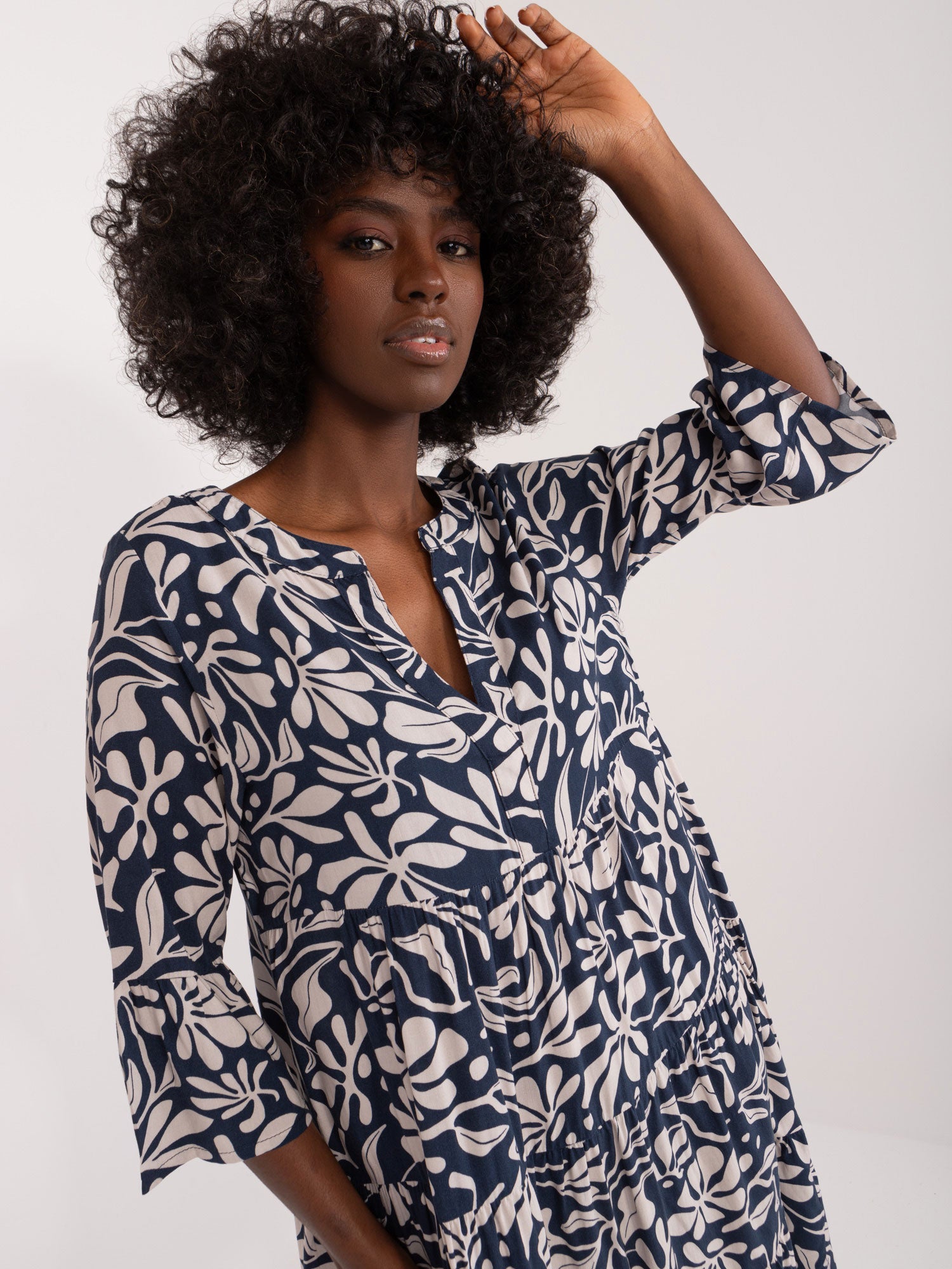 Wymiary sukienki w rozmiarze S mierzone na płasko: szerokość pod pachami - 50 cm, długość rękawa - 38 cm, długość całkowita - 96 cm.