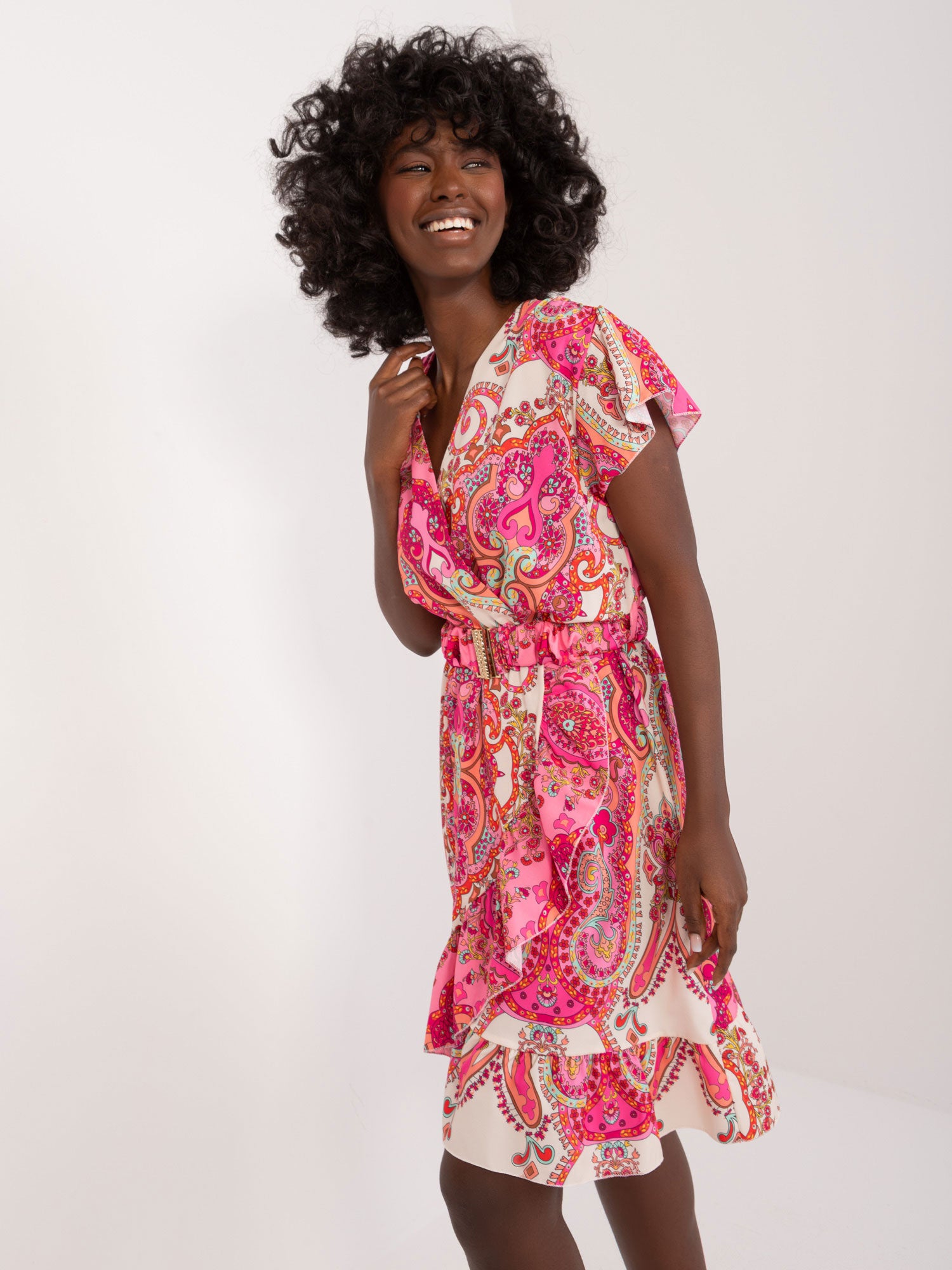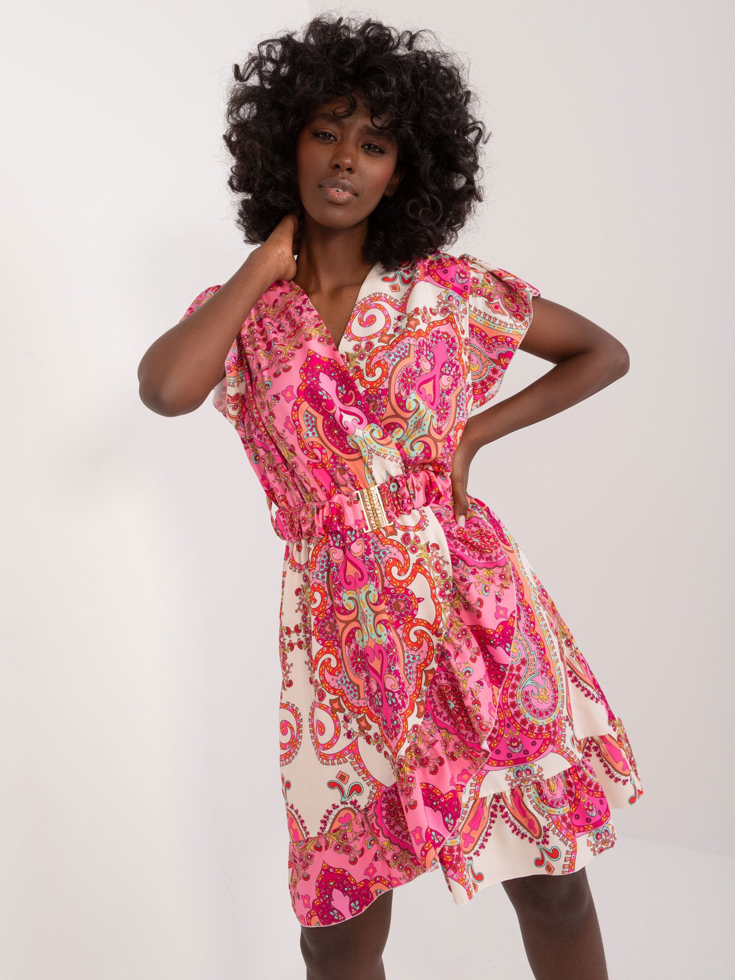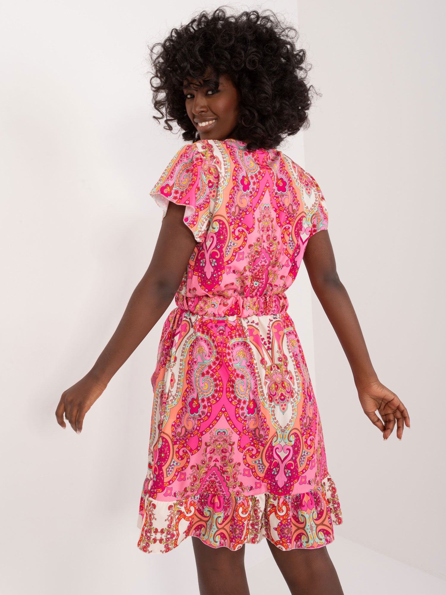 Wymiary sukienki w rozmiarze one size mierzone na płasko: szerokość pod pachami - 50 cm, długość całkowita - 88 cm.