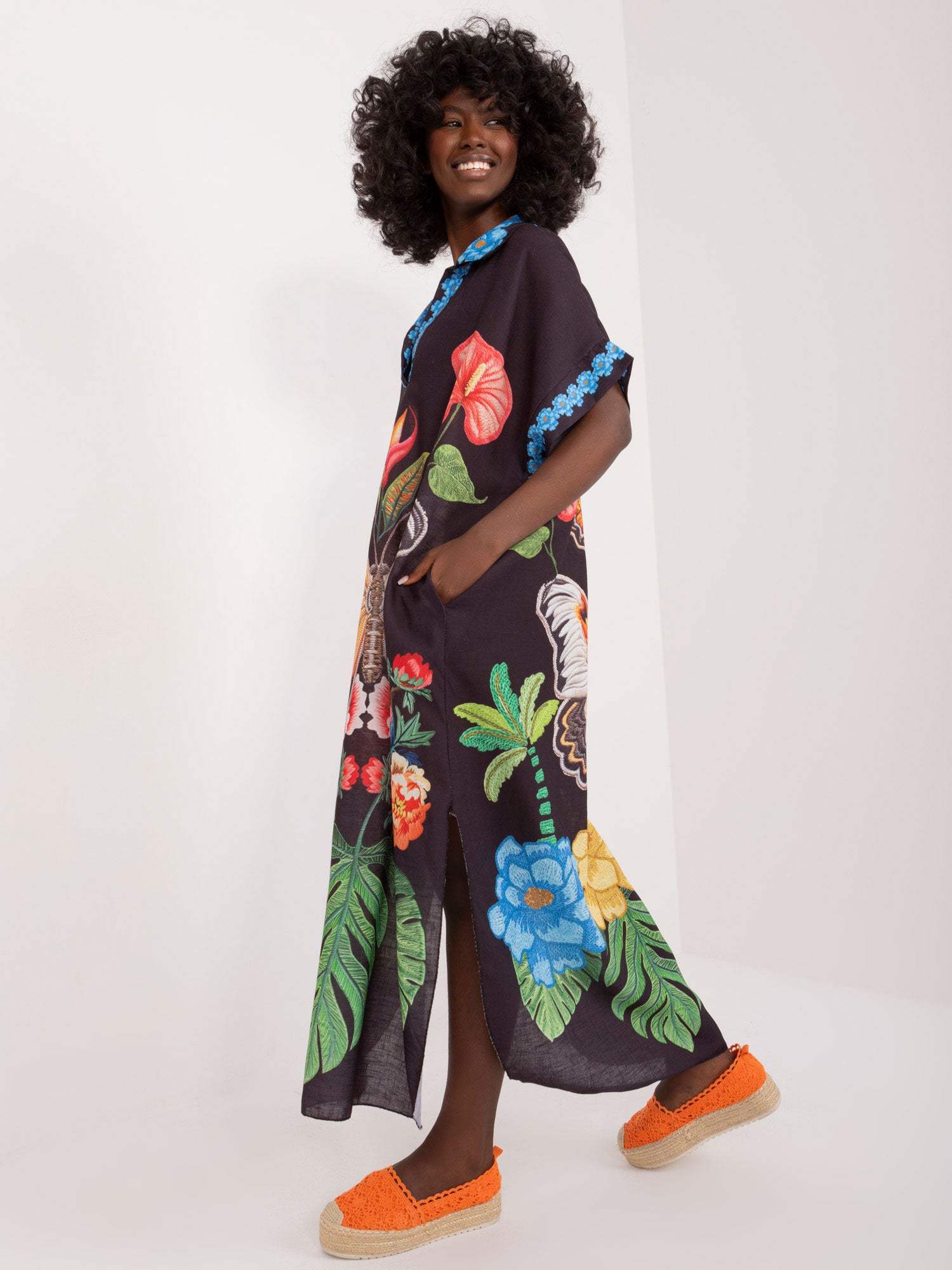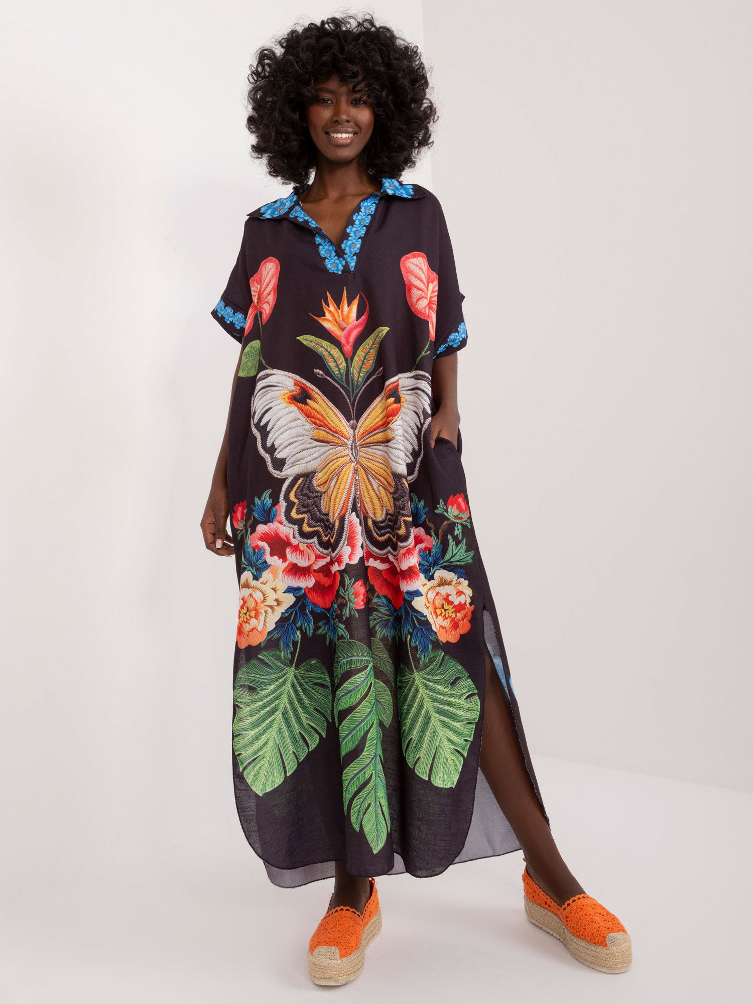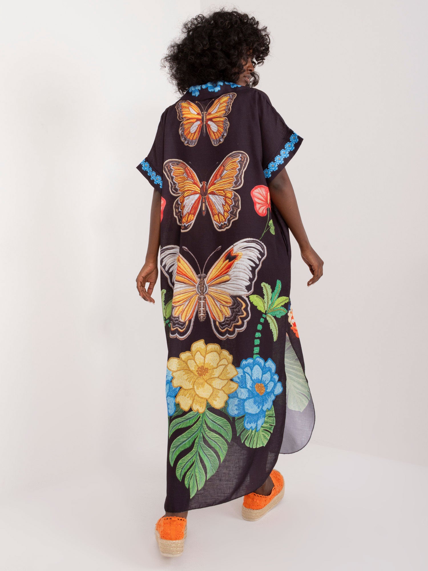 Wymiary sukienki w rozmiarze one size mierzone na płasko: szerokość pod pachami - 65 cm, długość całkowita - 127 cm