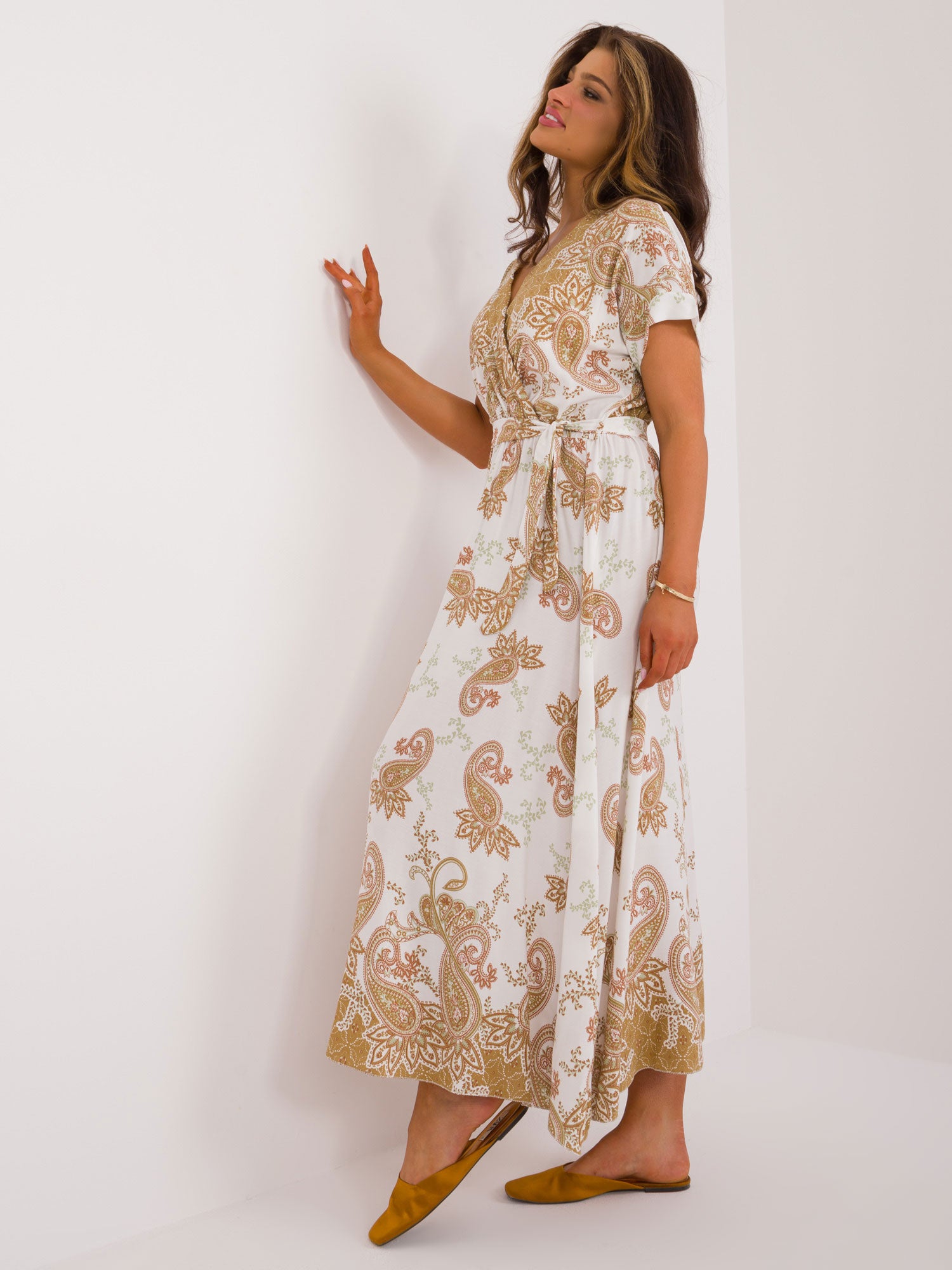 Wymiary sukienki w rozmiarze one size mierzone na płasko: szerokość pod pachami - 52 cm, długość całkowita - 142 cm.