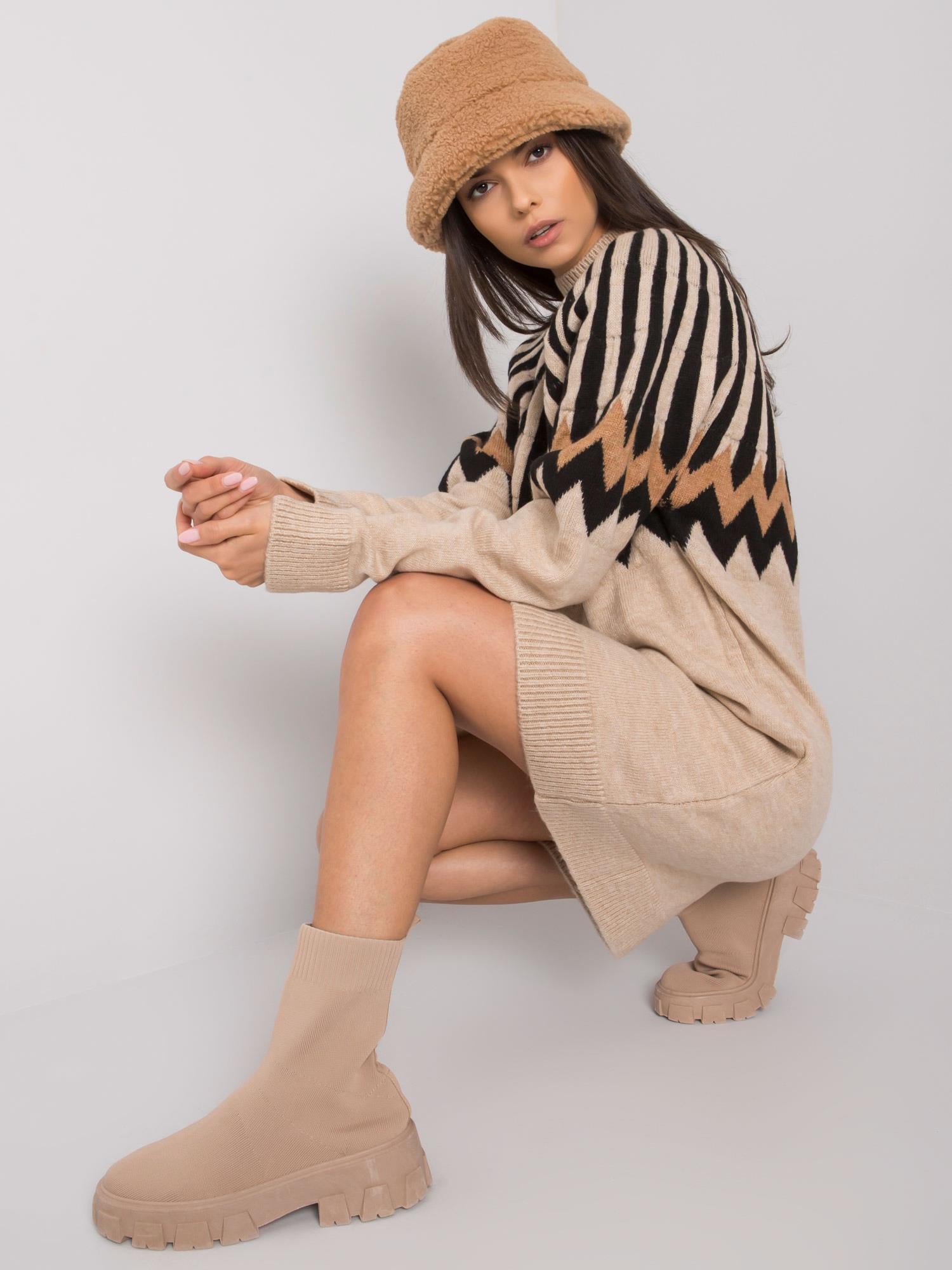 RUE PARIS Beżowa dzianinowa sukienka.