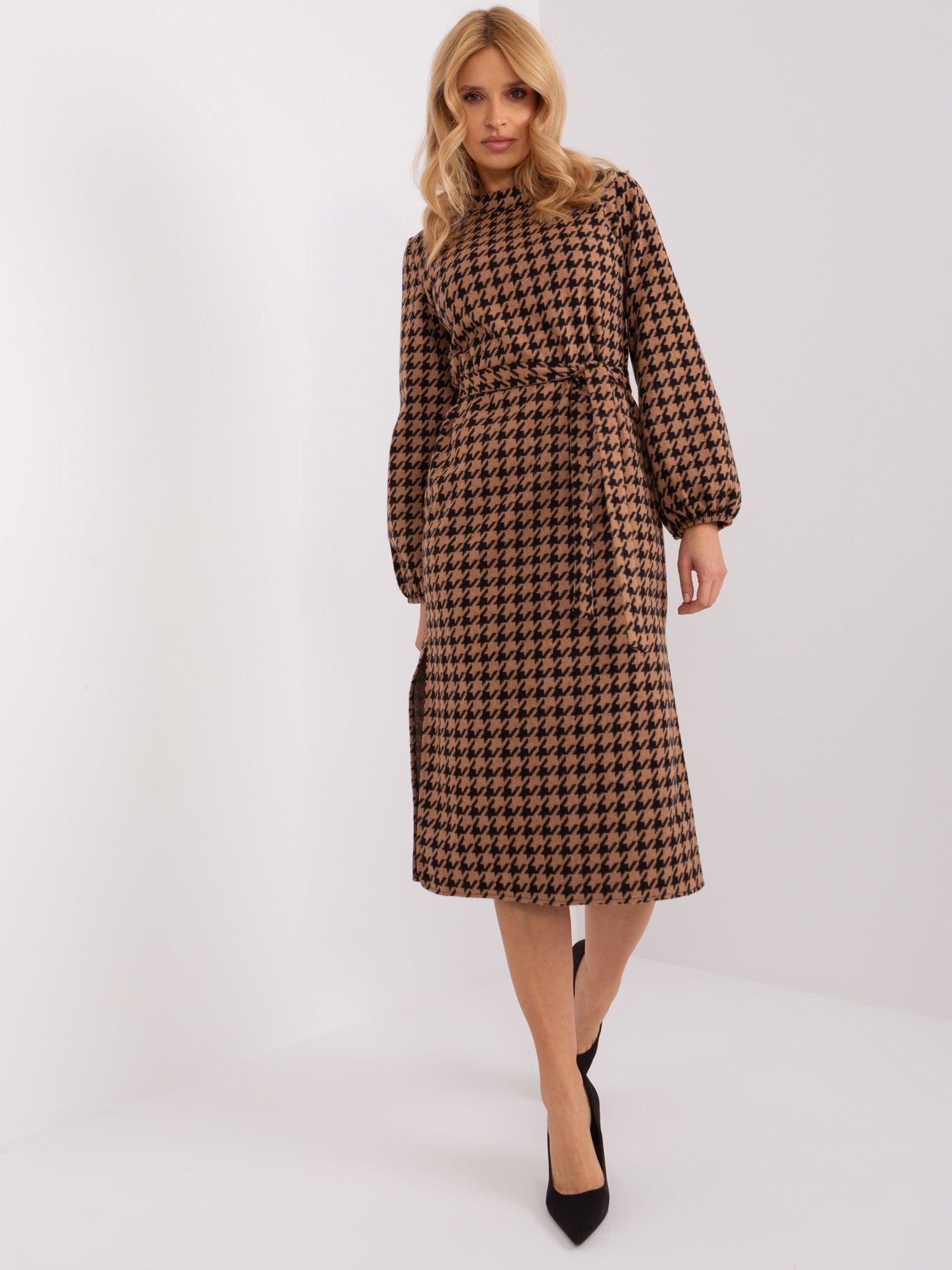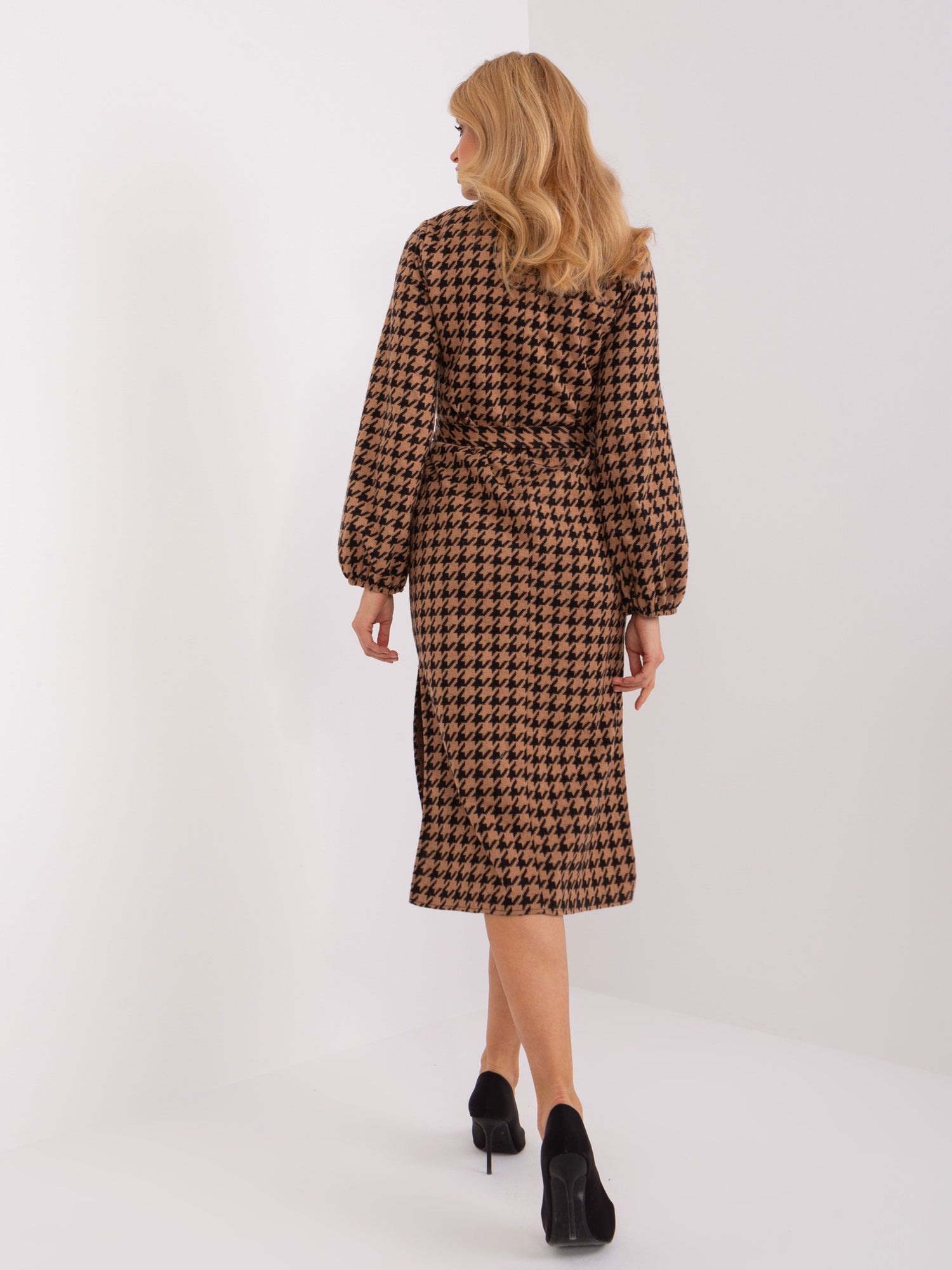 Wymiary sukienki w rozmiarze M mierzone na płasko: szerokość pod pachami - 50 cm, długość całkowita - 119 cm, długość rękawa - 60 cm.