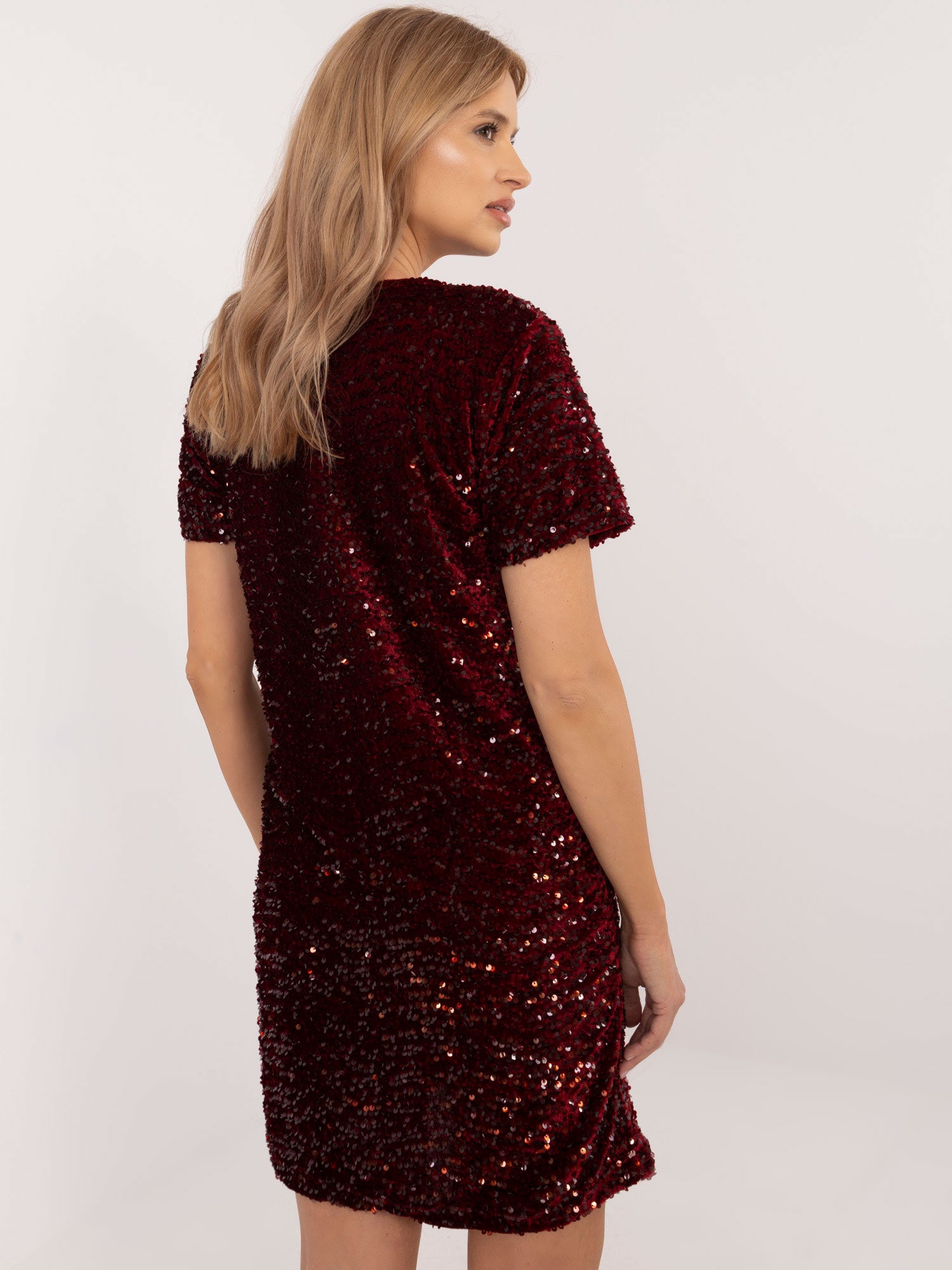 Wymiary sukienki w rozmiarze one size po rozciągnięciu: szerokość pod pachami - 52 cm, obwód w talii - 108 cm, obwód w biodrach - 116 cm, długość całkowita - 92 cm.
