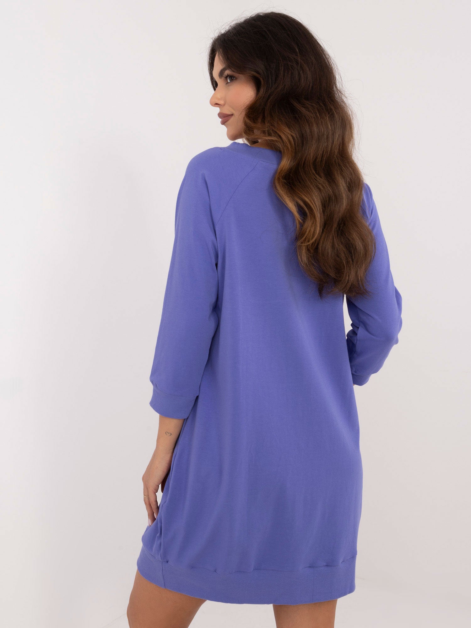 Wymiary sukienki w rozmiarze S/M mierzone na płasko: szerokość pod pachami - 56 cm, długość całkowita - 89 cm, długość rękawa - 47 cm