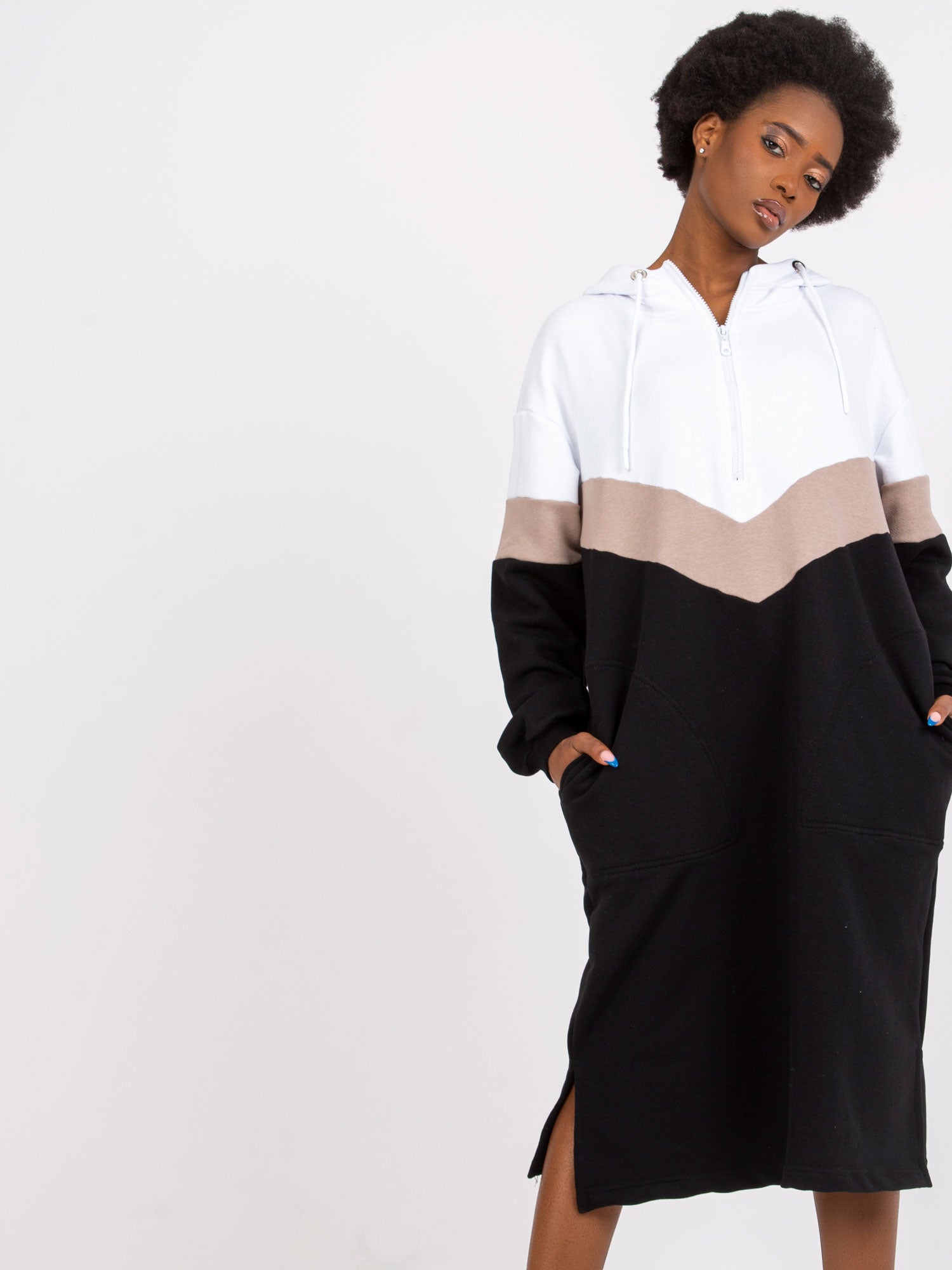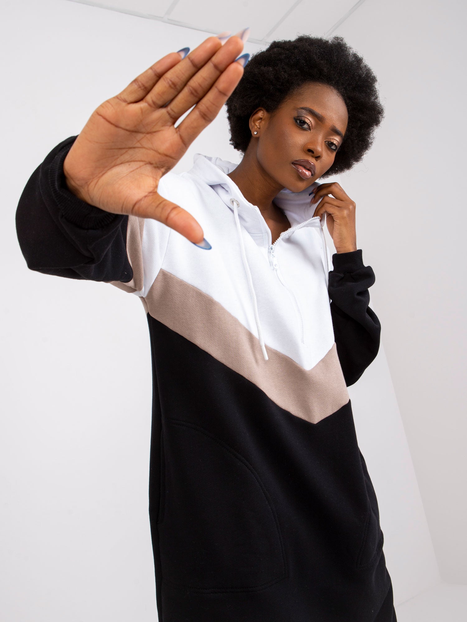 Wymiary sukienki w rozmiarze S/M mierzone na płasko: szerokość pod pachami - 58 cm, długość całkowita - 103 cm, długość rękawa - 62 cm.