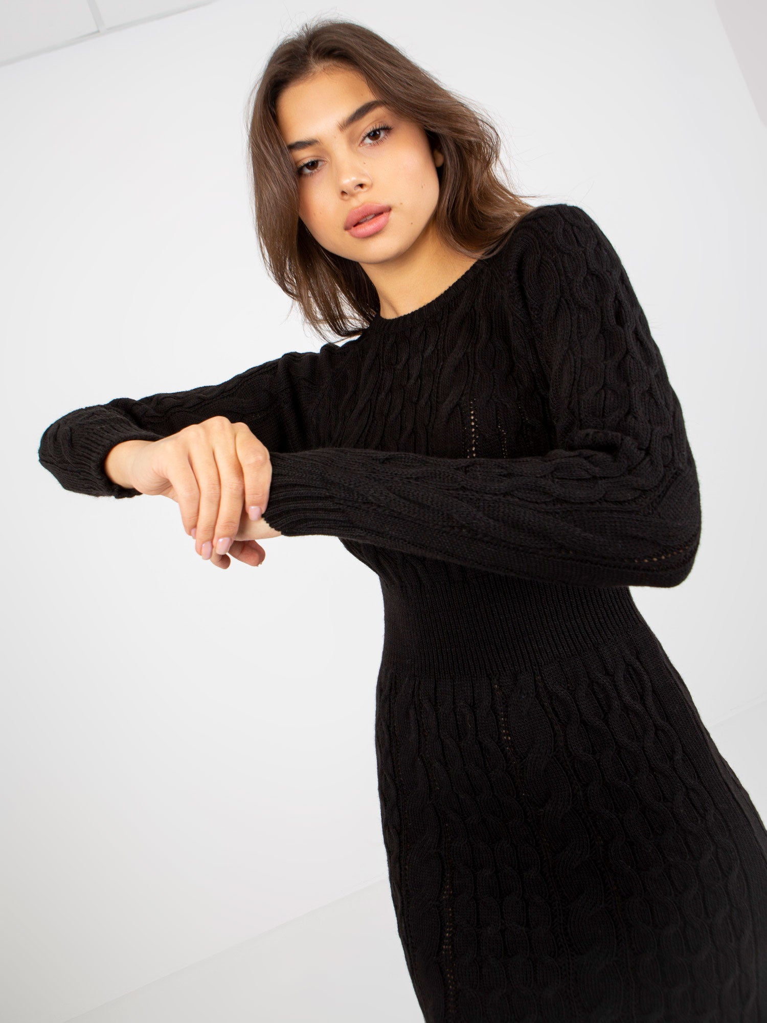 Czarna midi sukienka dzianinowa w warkocze RUE PARIS .