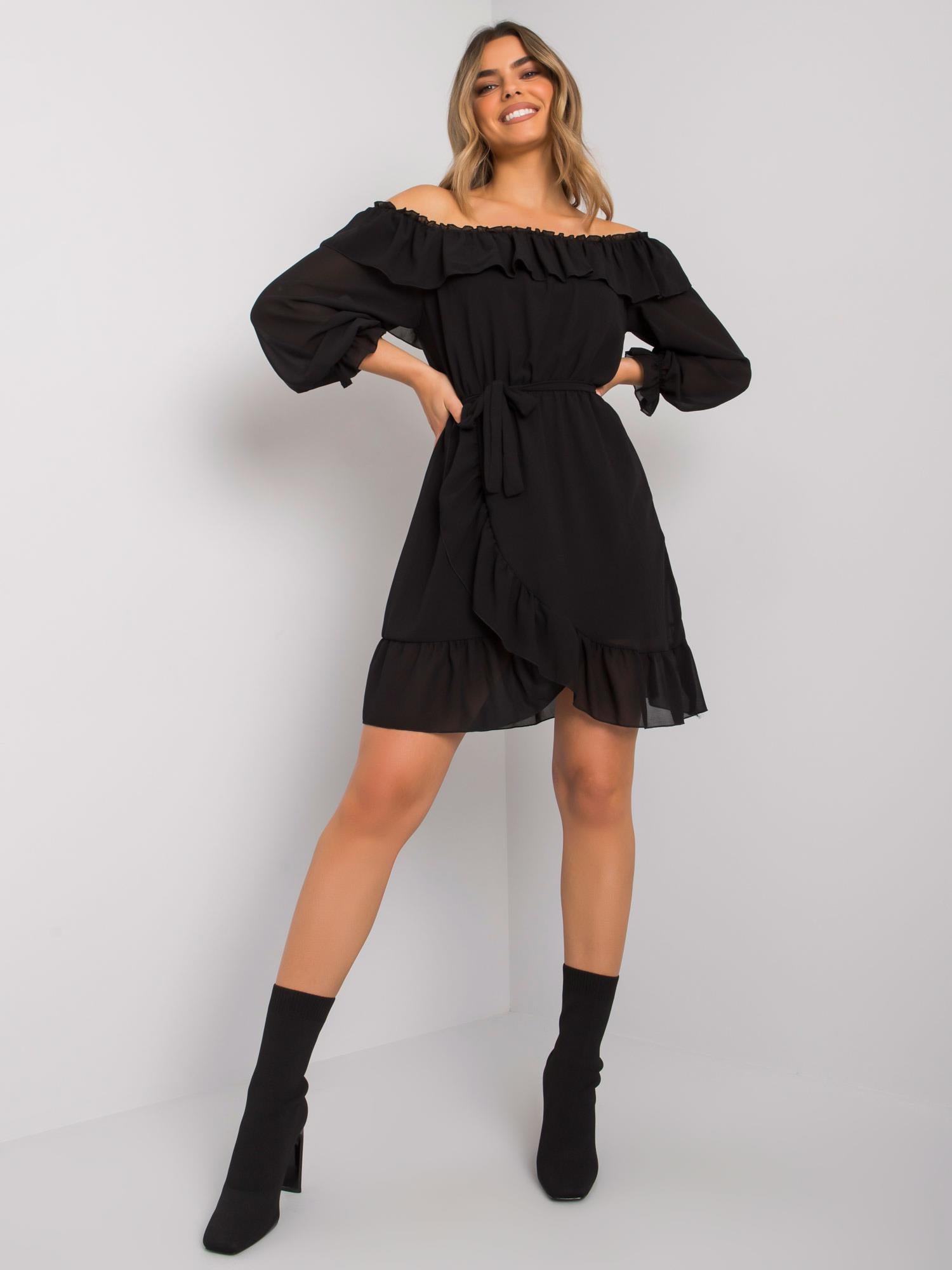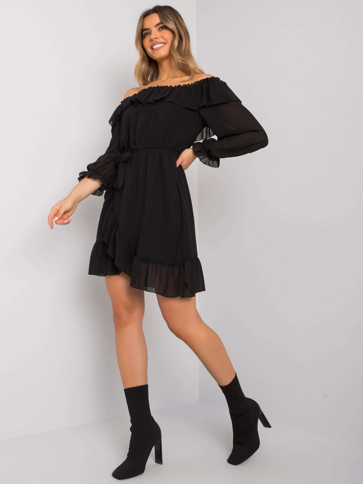 OCH BELLA Czarna sukienka z długim rękawem.