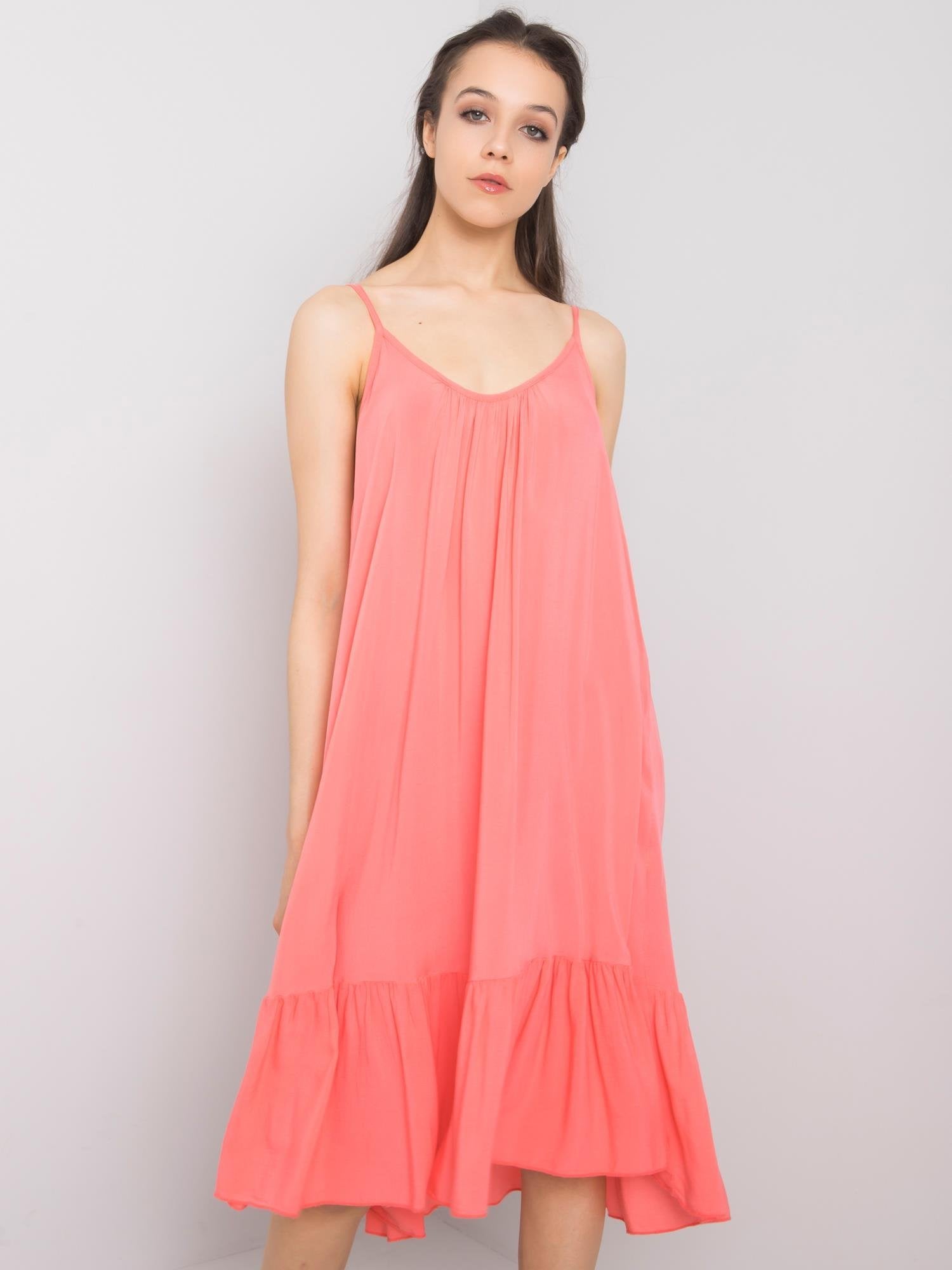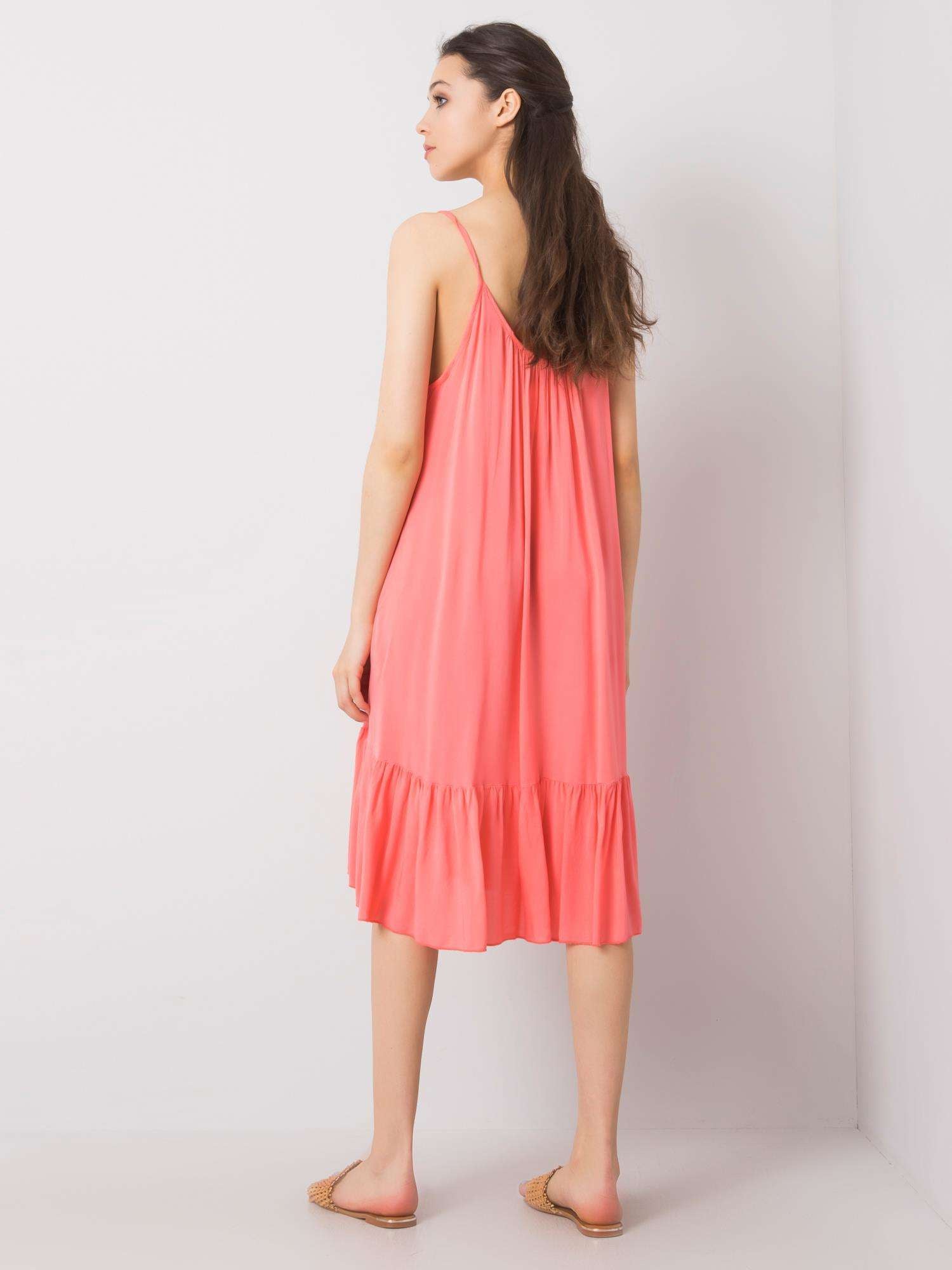 OCH BELLA Koralowa sukienka damska z falbaną.