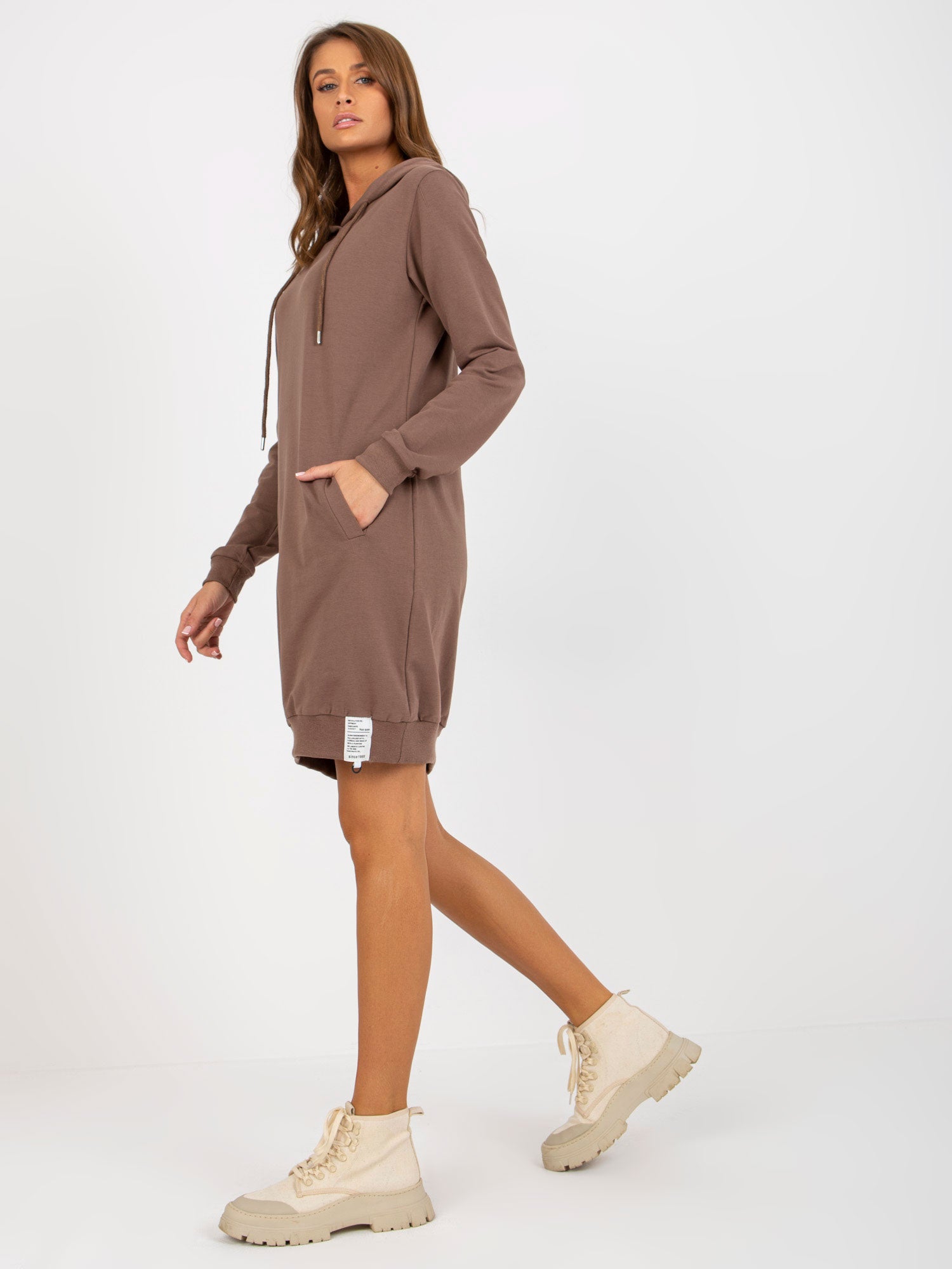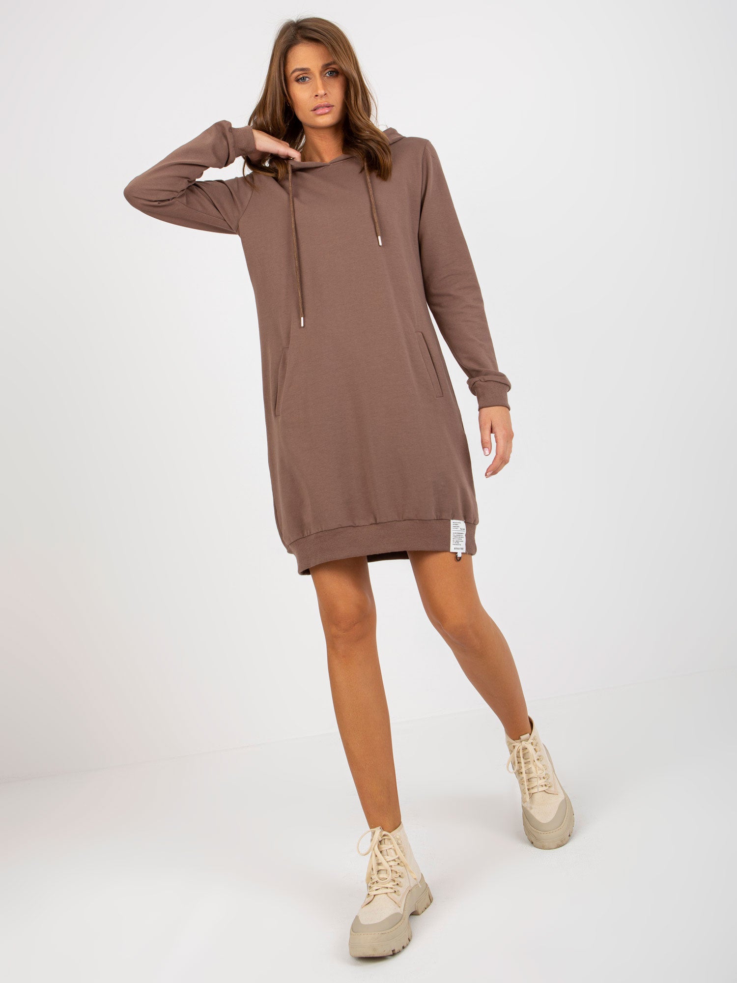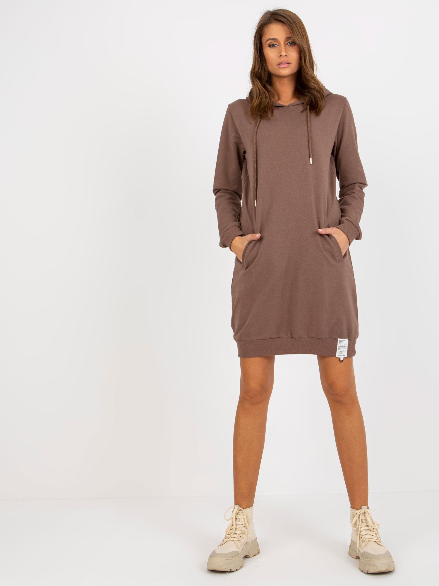 Brązowa dresowa sukienka basic z kapturem .