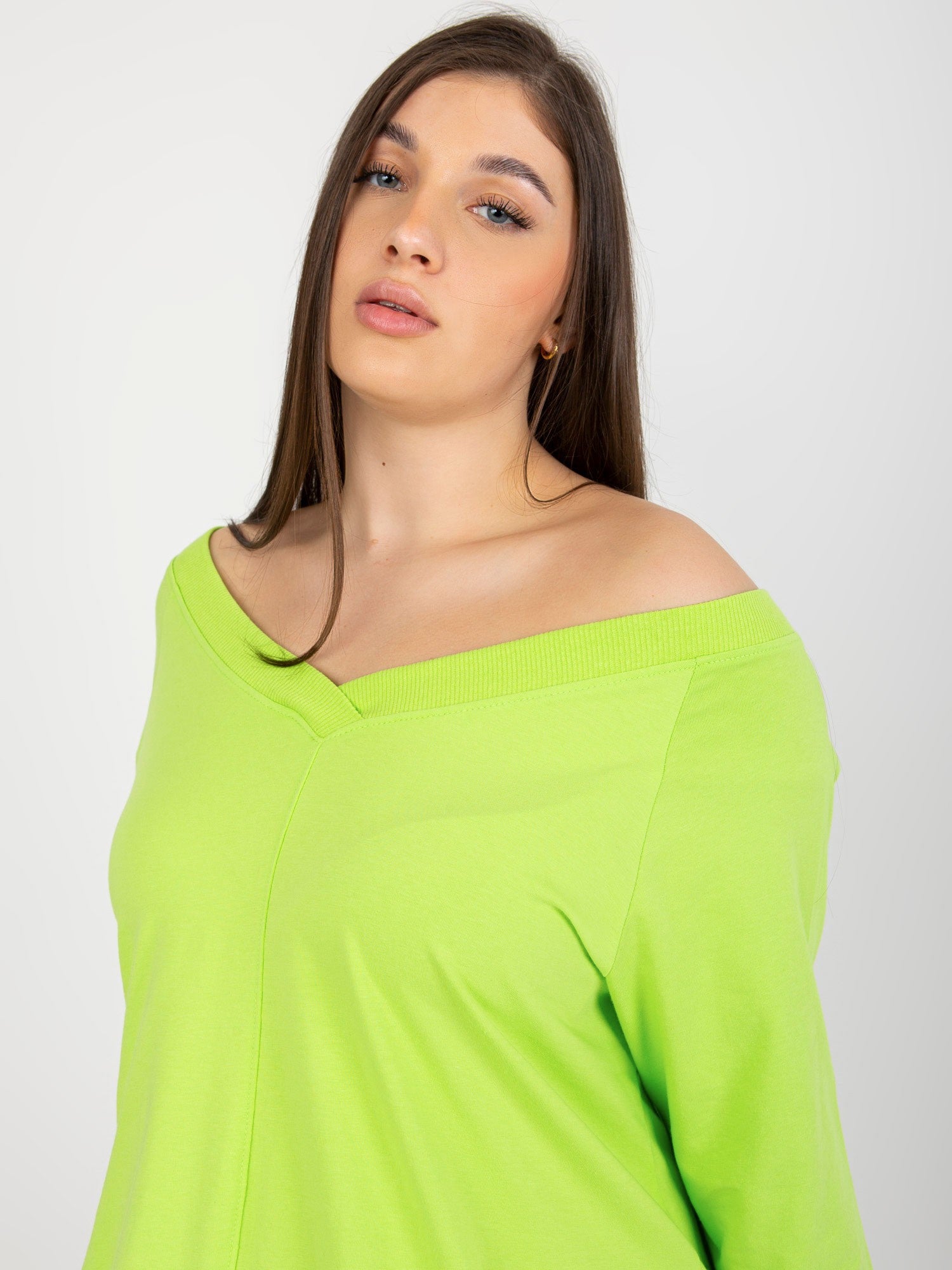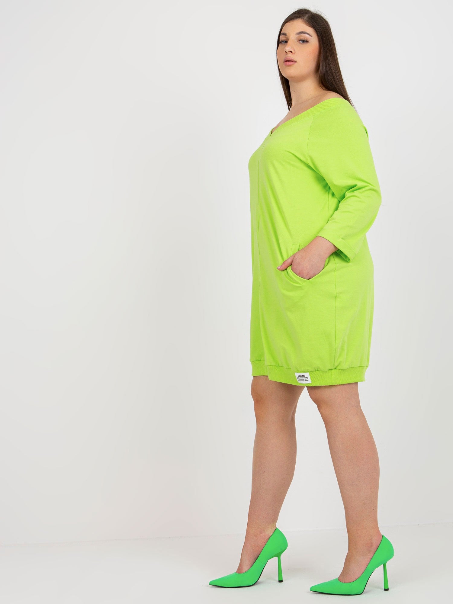 Limonkowa dresowa sukienka plus size z dekoltem V .