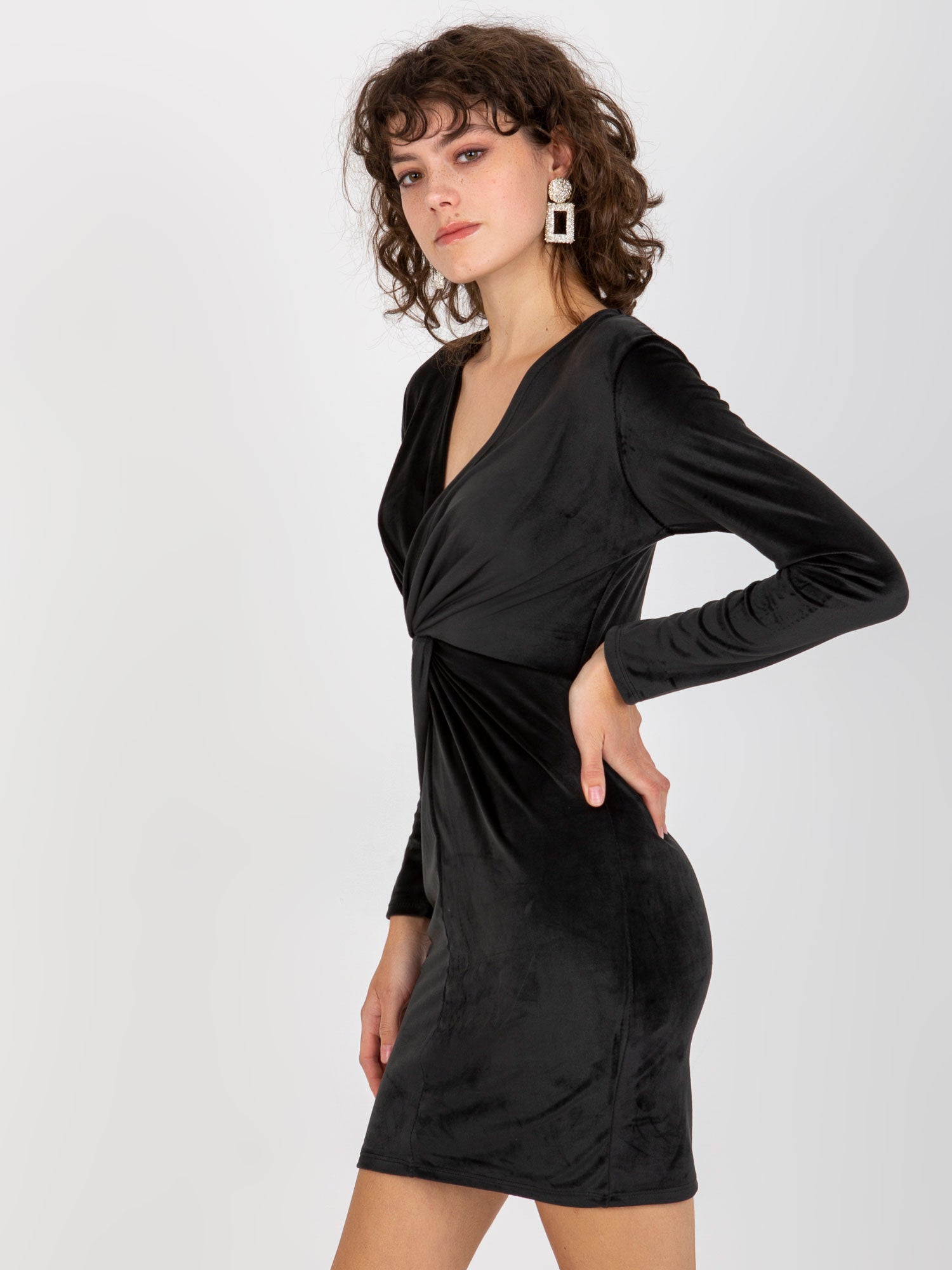 Czarna welurowa sukienka koktajlowa o długości mini RUE PARIS .