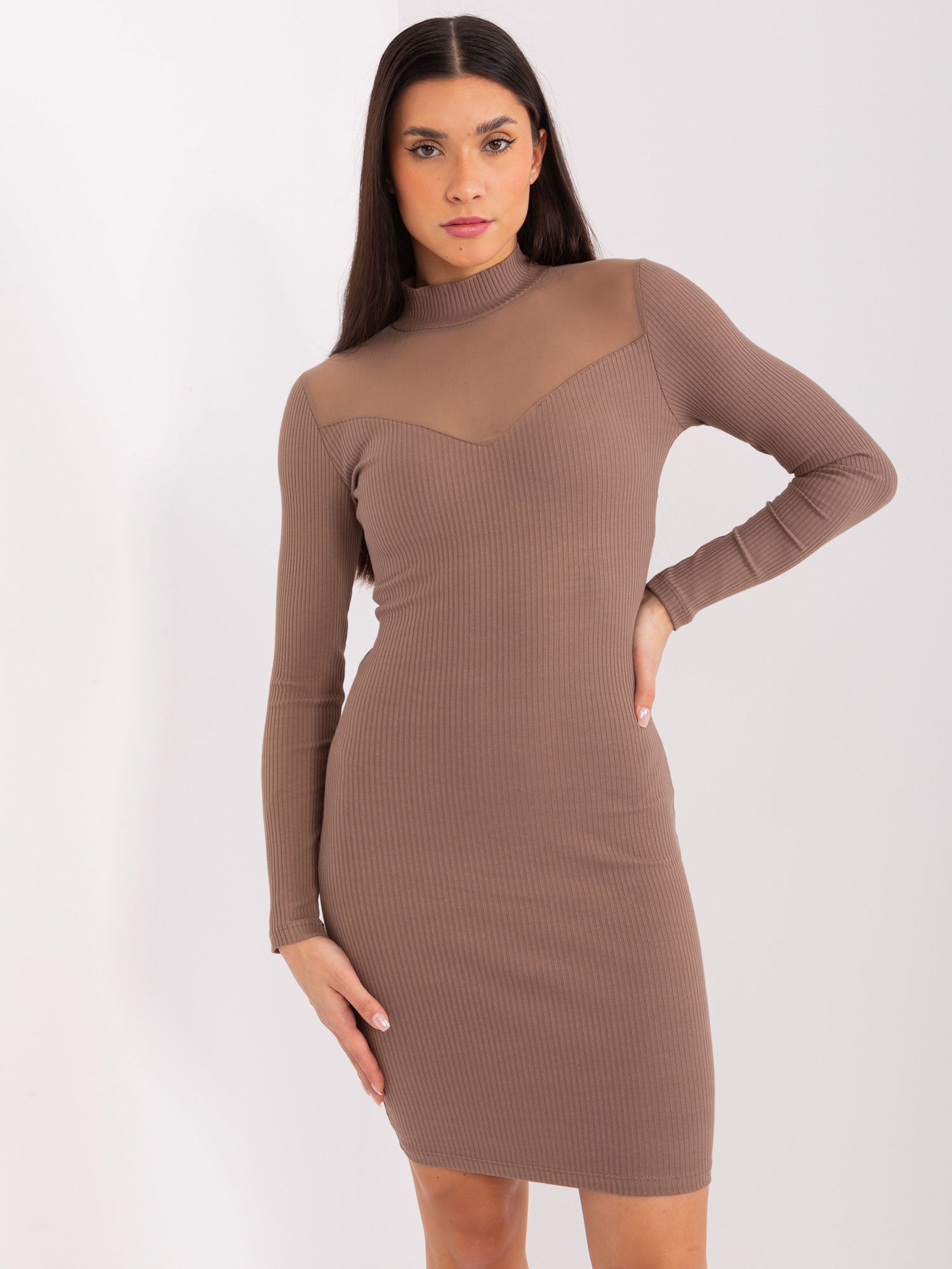 Brązowa sukienka dopasowana z półgolfem BASIC FEEL GOOD .
