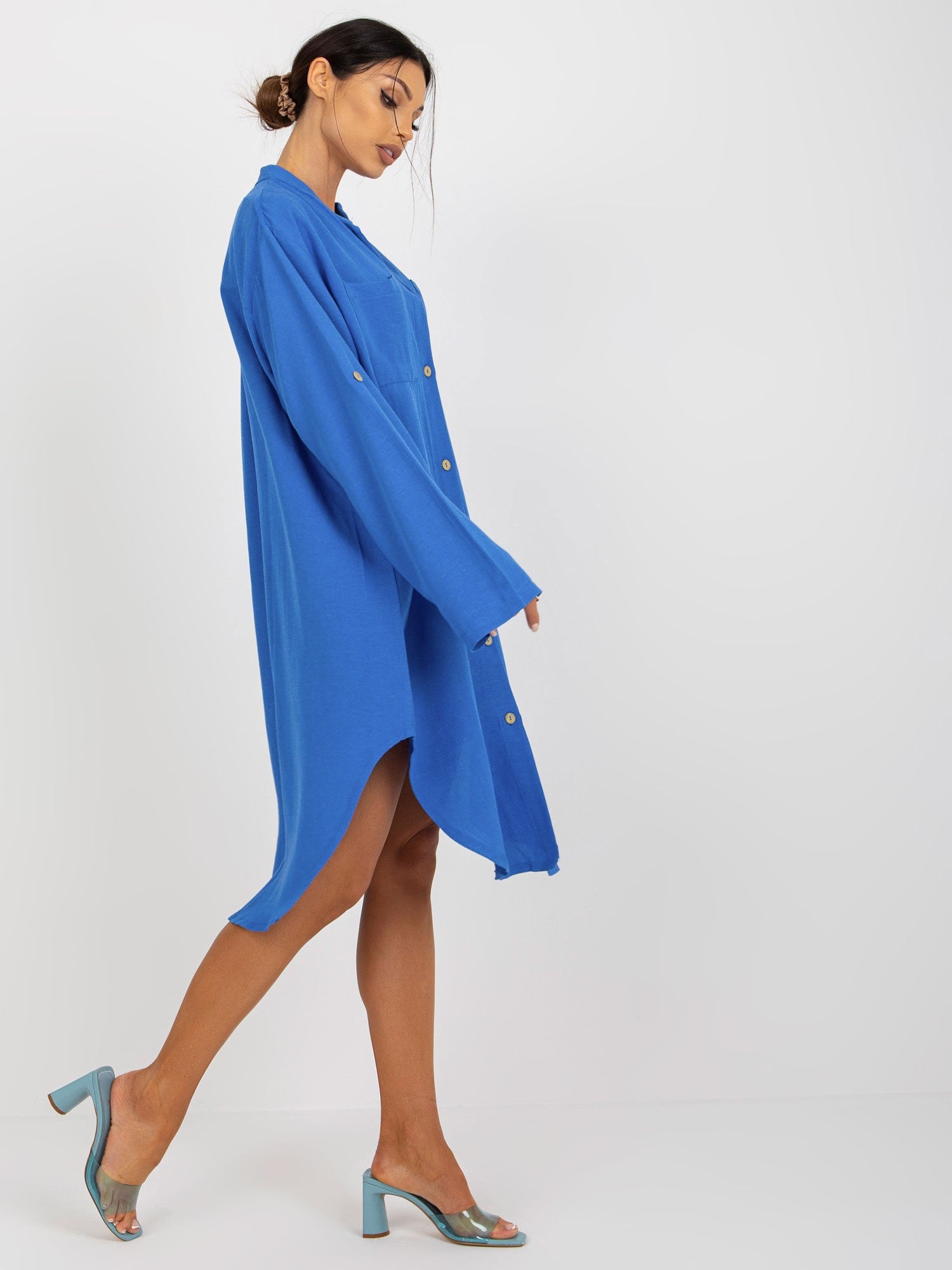 Niebieska sukienka szmizjerka z kieszeniami OCH BELLA .