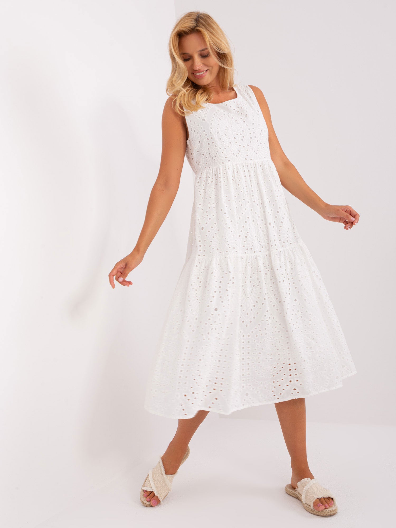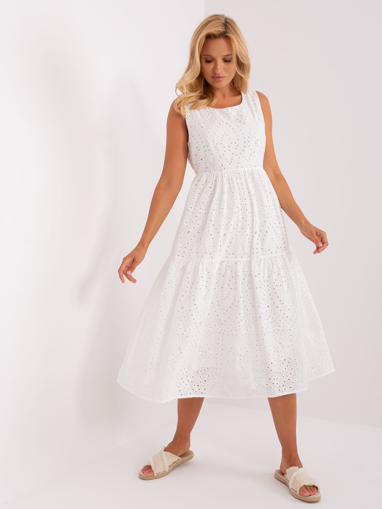 Biała ażurowa sukienka z falbaną OCH BELLA .
