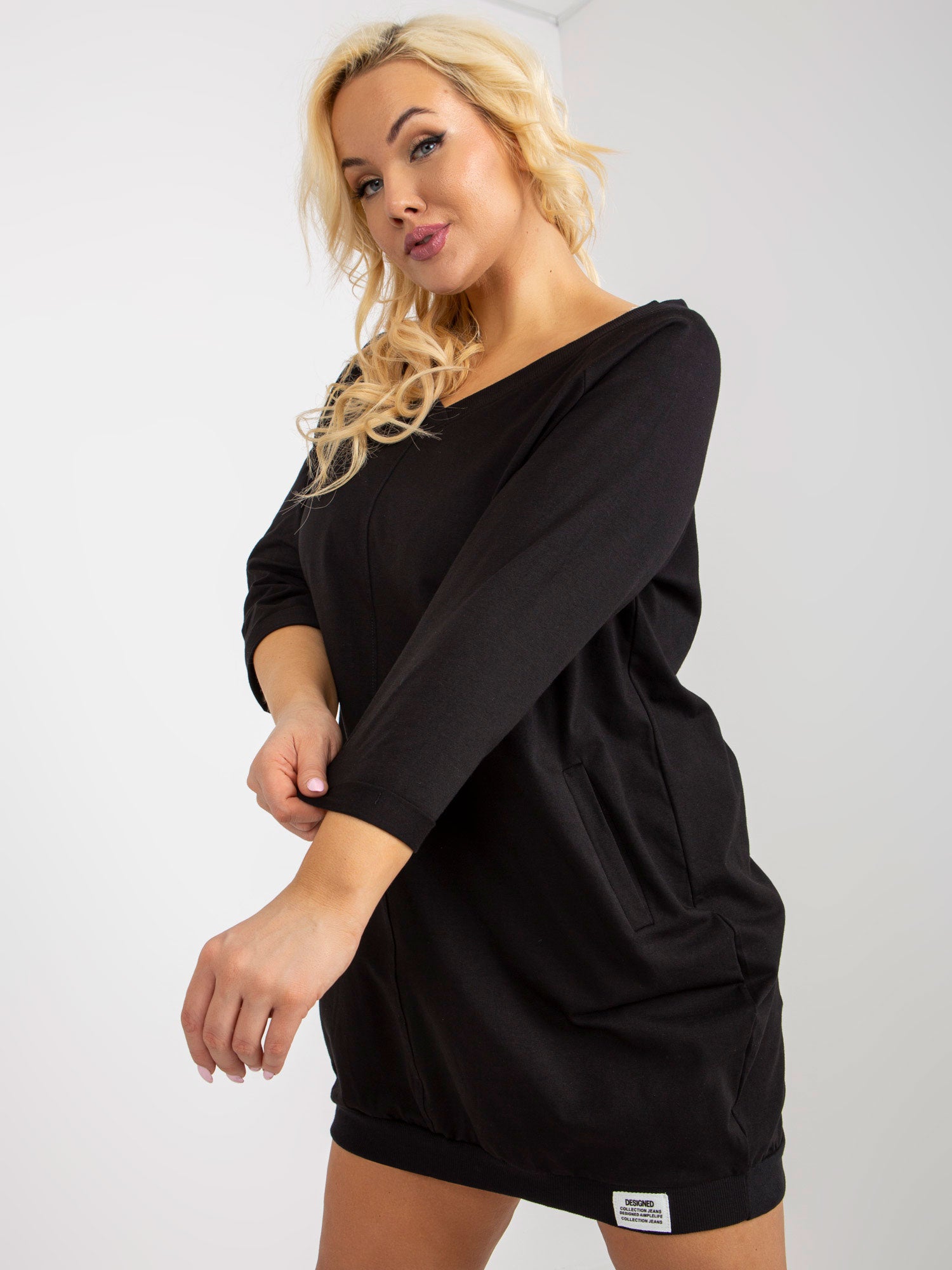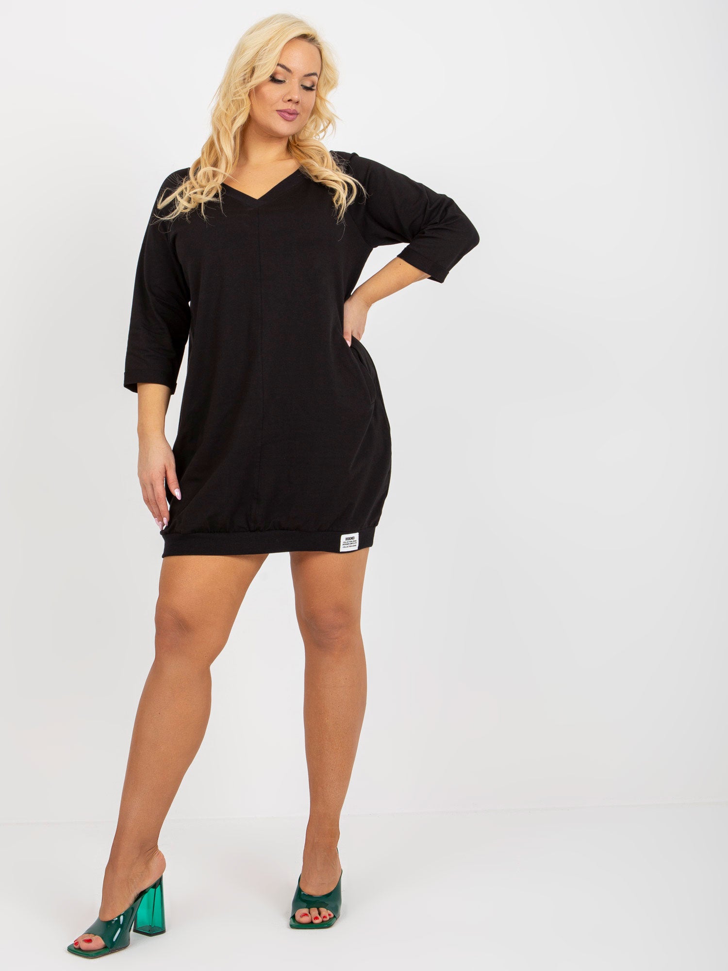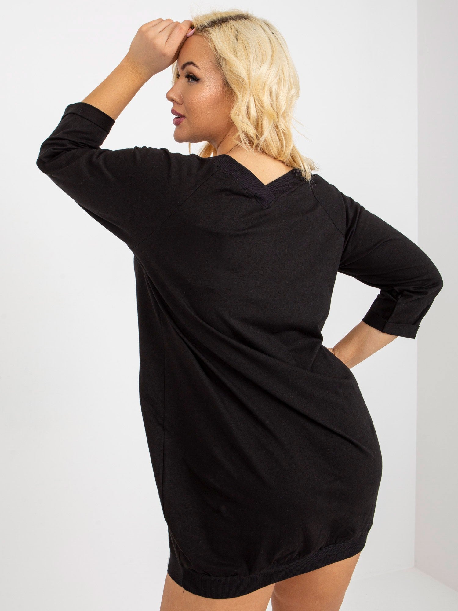 Czarna dresowa sukienka basic plus size z dekoltem V .