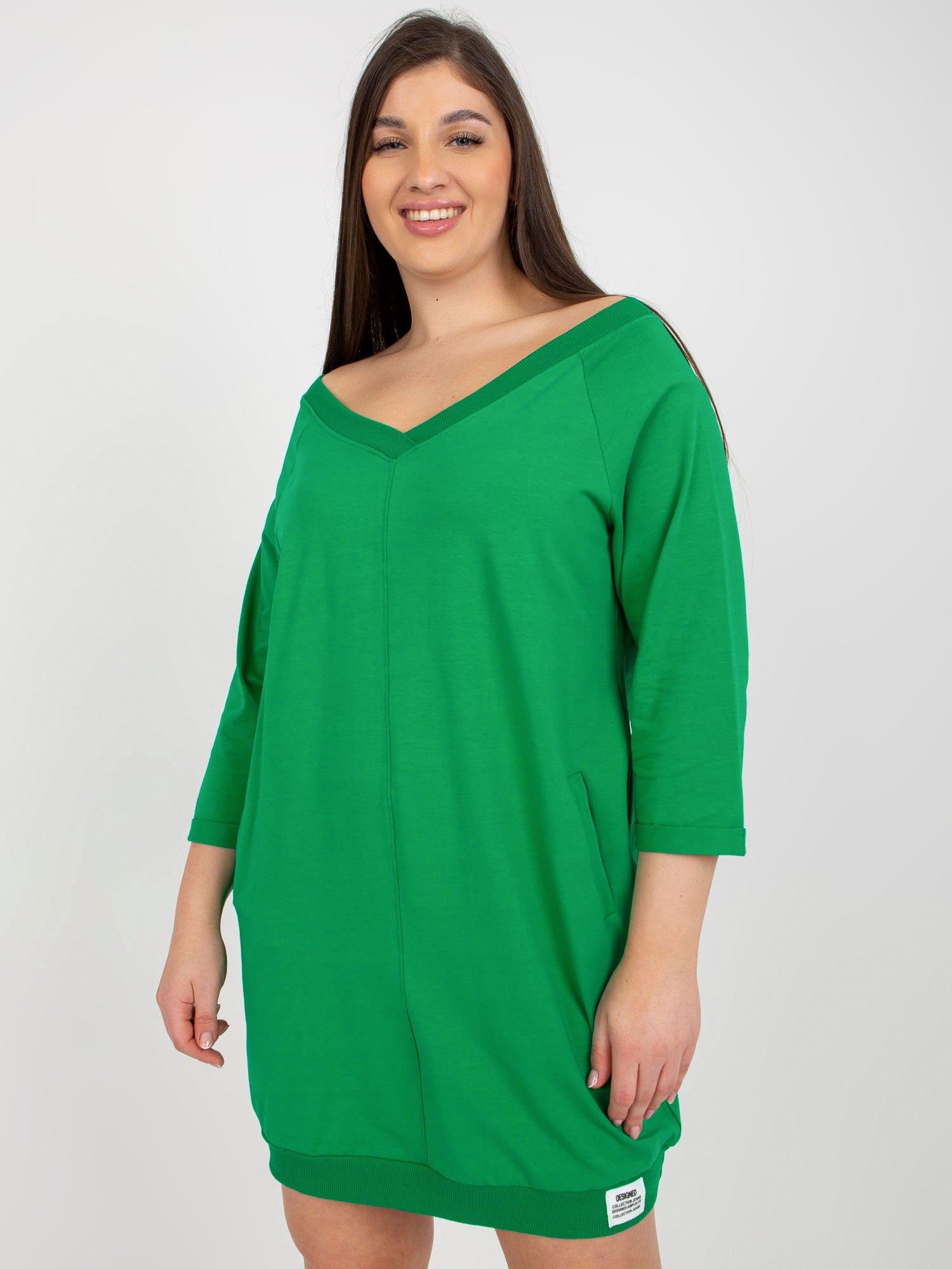 Zielona mini sukienka plus size basic z rękawem 3/4 .