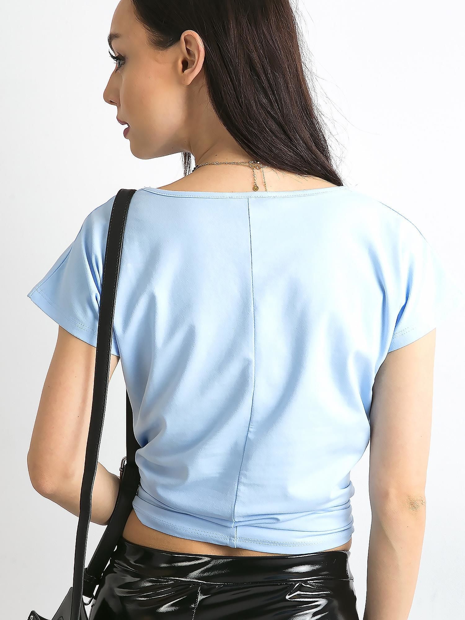 Jasnoniebieski t-shirt Circle Bawełniana koszulka bez wzorów jest świetnym podkładem do tworzenia przeróżnych stylizacji, zarówno tych codziennych, jak i nieco bardziej eleganckich. Sprawdzi się jako element stroju do pracy czy do szkoły, a także na imprezę czy na spotkanie ze znajomymi. Zwykły t-shirt damski jest bardzo wygodny w noszeniu i niezwykle uniwersalny, ponieważ pasuje do niego dużo innych ubrań w casualowym lub nieco bardziej kobiecym stylu. Ten model zrobiony jest z przyjemnego w dotyku i przewiewnego materiału o dużej zawartości czystej bawełny, dlatego koszulka jest tak komfortowa w noszeniu i miękka. Dostępna jest w naszym sklepie online w wielu modnych kolorach do wyboru. Ma okrągły dekolt, krótki rękaw oraz swobodny fason, który rewelacyjnie układa się na kobiecej sylwetce i nadaje jej fajnego wyglądu.