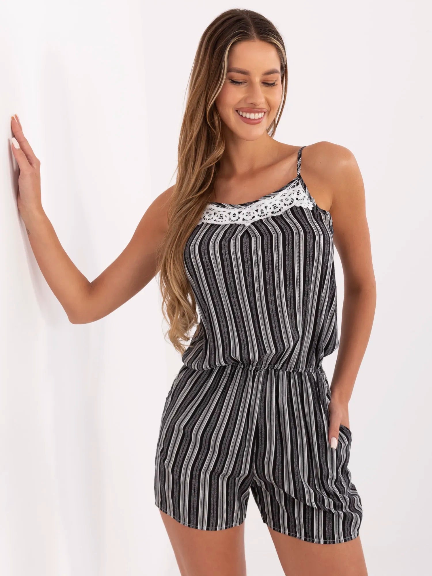 Wymiary kombinezonu w rozmiarze one size mierzone na płasko: szerokość pod pachami - 45 cm, szerokość w talii - 33 cm (na płasko), szerokość w talii - 59 cm ( po rozciągnięciu), szerokość w biodrach - 56 cm, długość całkowita - 90 cm.