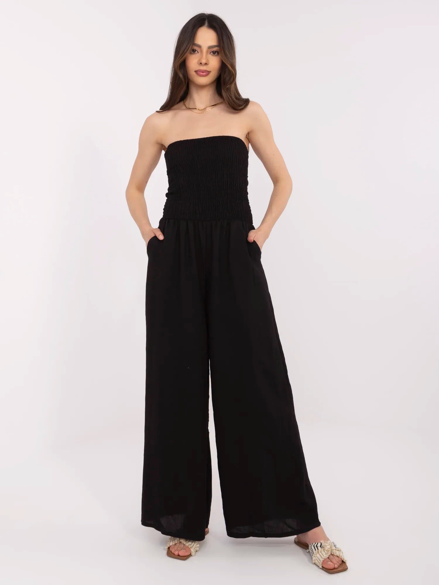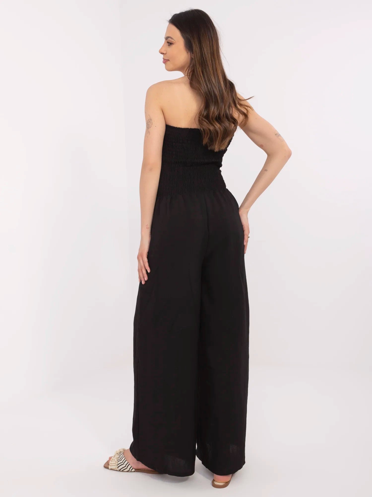 Wymiary kombinezonu w rozmiarze one size mierzone na płasko: szerokość pod pachami - 30 cm (na płasko), szerokość pod pachami - 54 cm (po rozciągnięciu), szerokość w talii - 28 cm (na płasko), szerokość w talii - 58 cm (po rozciągnięciu), szerokość w biodrach - 58 cm, długość całkowita - 128 cm.