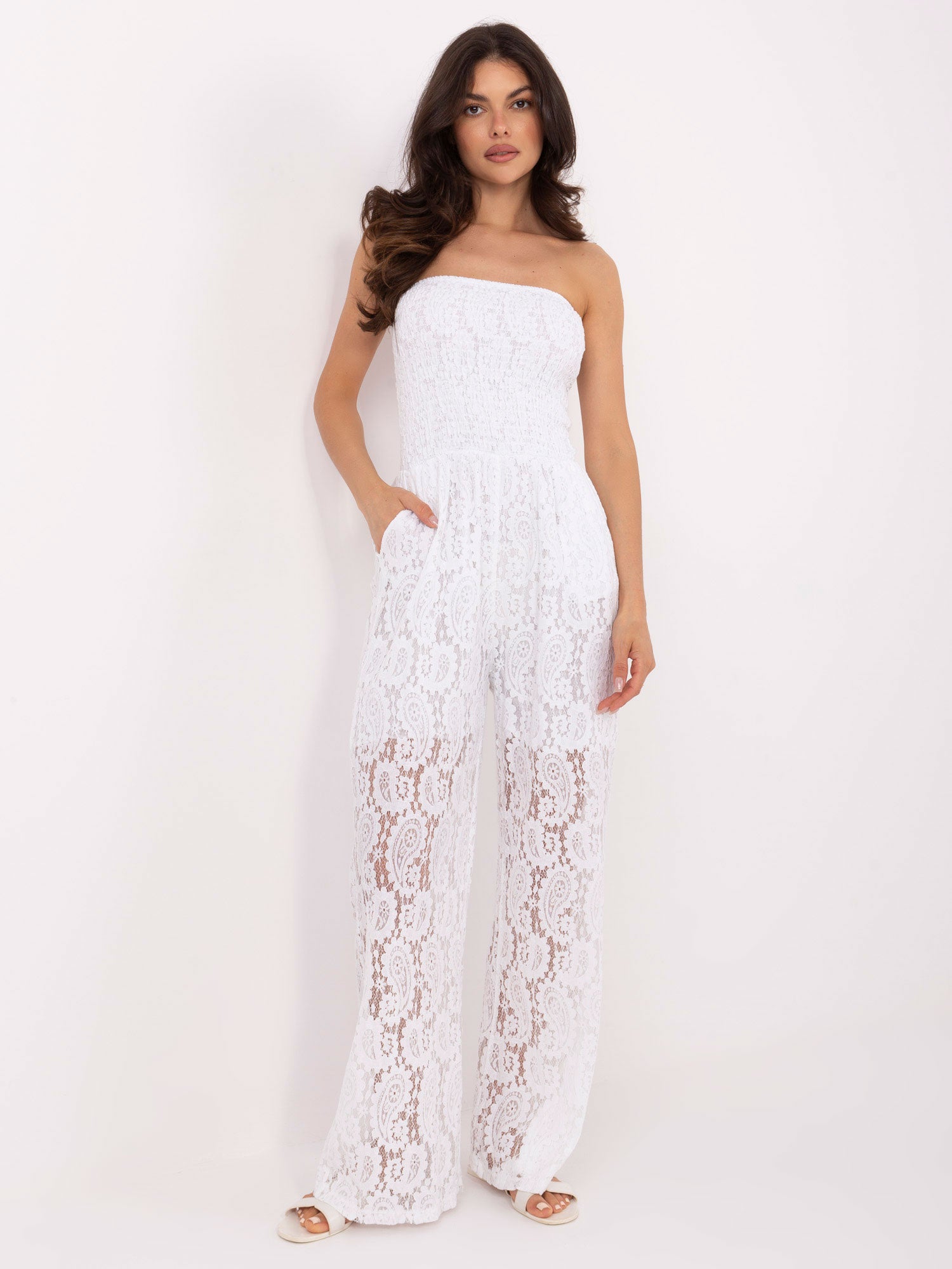 Wymiary kombinezonu w rozmiarze one size mierzone na płasko: szerokość pod pachami - 31 cm (na płasko), szerokość pod pachami - 60 cm (po rozciągnięciu), szerokość w talii - 30 cm (na płasko), szerokość w talii - 58 cm (po rozciągnięciu), szerokość w biodrach - 52 cm, długość całkowita - 131 cm.