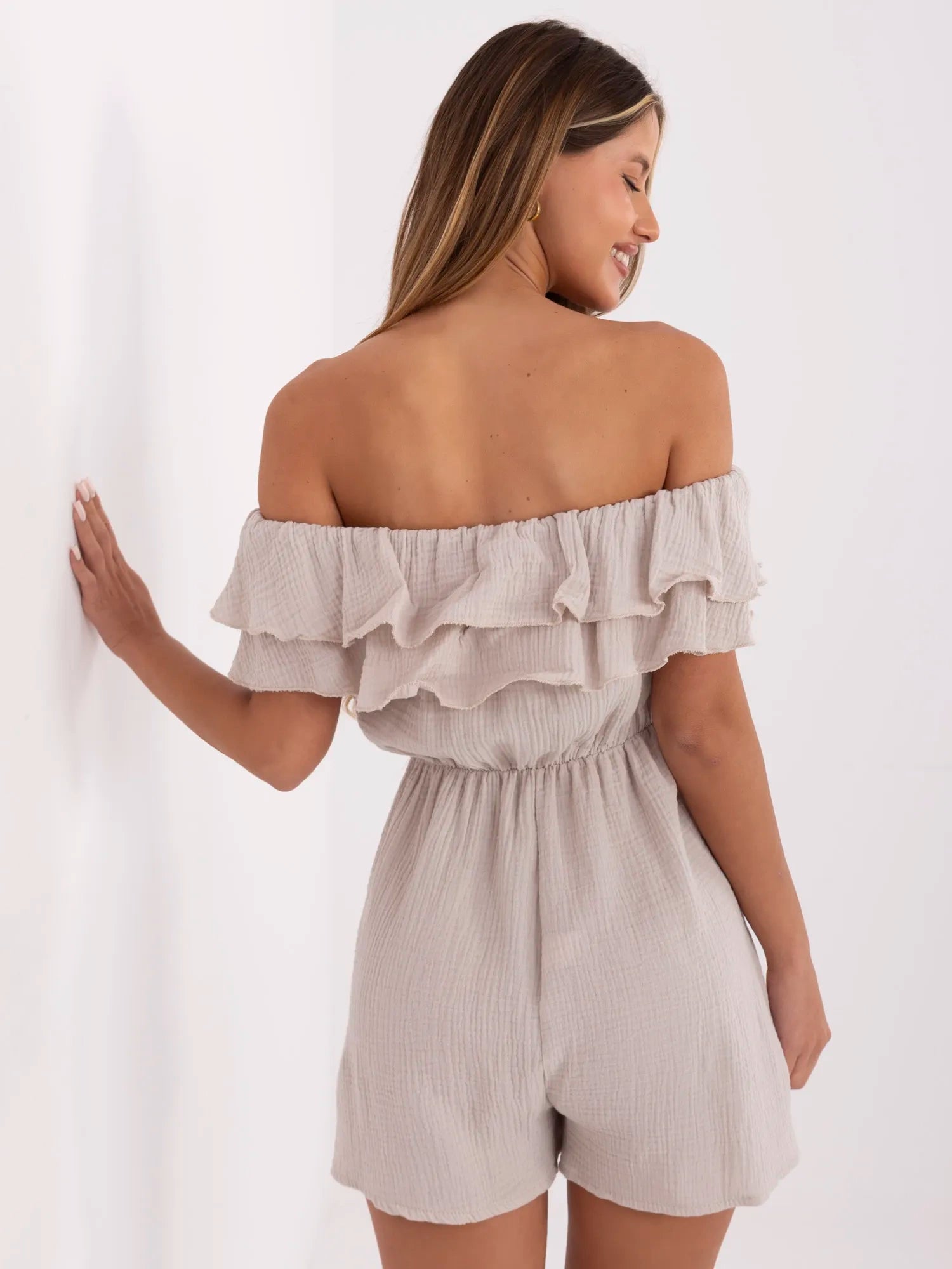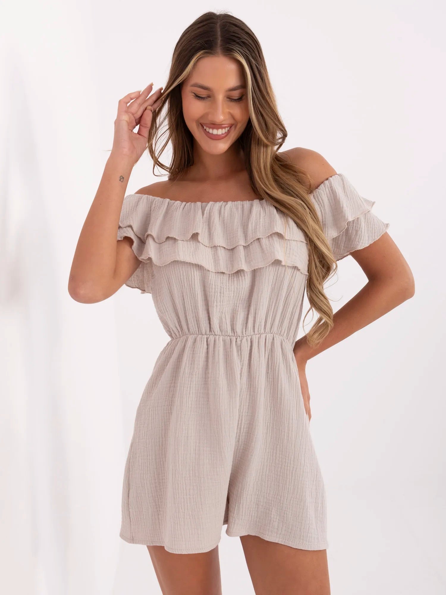 Wymiary kombinezonu w rozmiarze one size mierzone na płasko: szerokość pod pachami - 48 cm, szerokość w talii - 31 cm (na płasko), szerokość w talii - 60 cm ( po rozciągnięciu), szerokość w biodrach - 58 cm, długość całkowita - 84 cm.