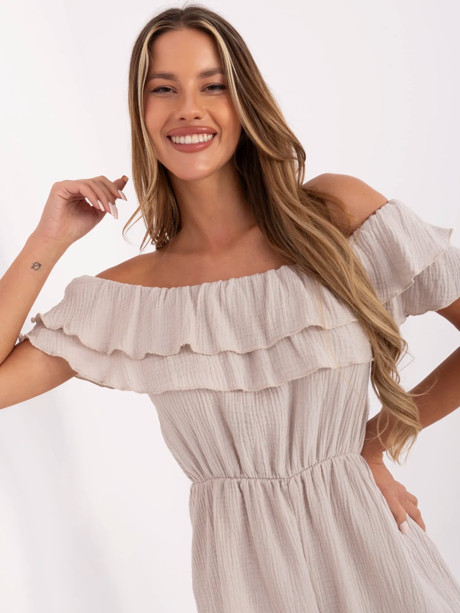 Modelka ma na sobie rozmiar one size. Wymiary modelki: wzrost 173 cm, biust 89 cm, talia 65 cm, biodra 91 cm.