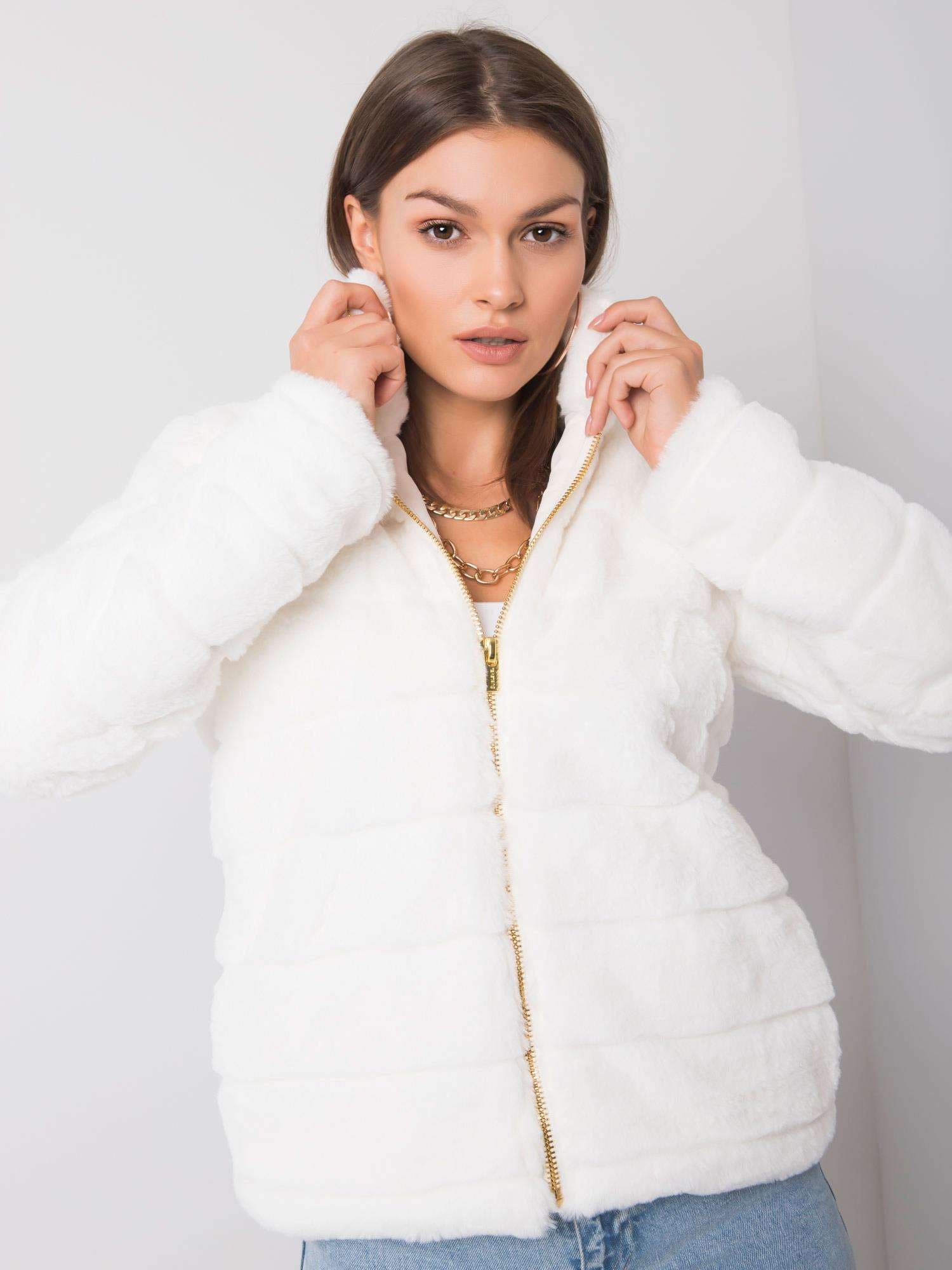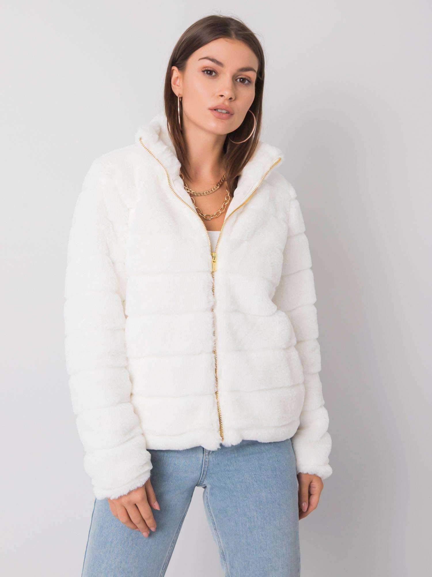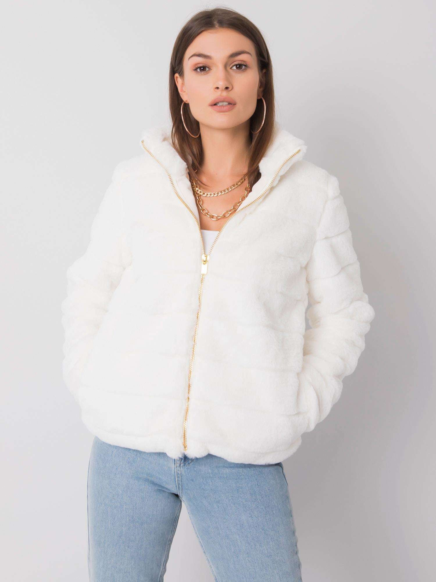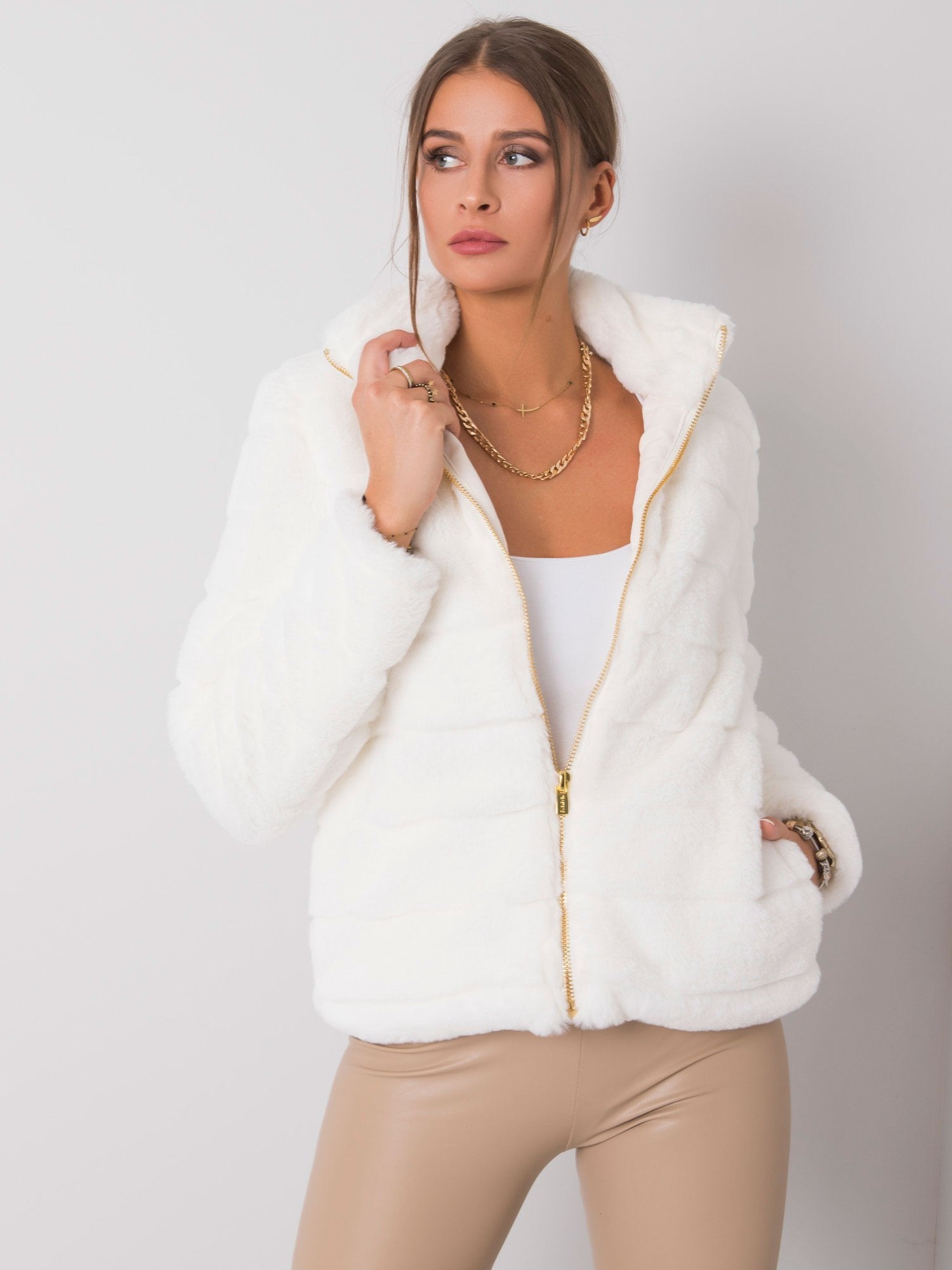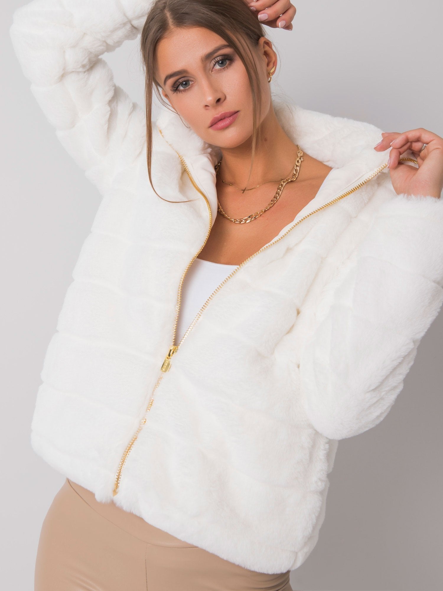SUBLEVEL Ecru kurtka futro bez kaptura.