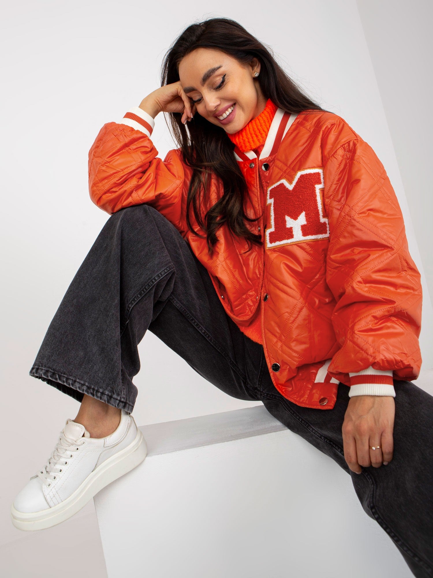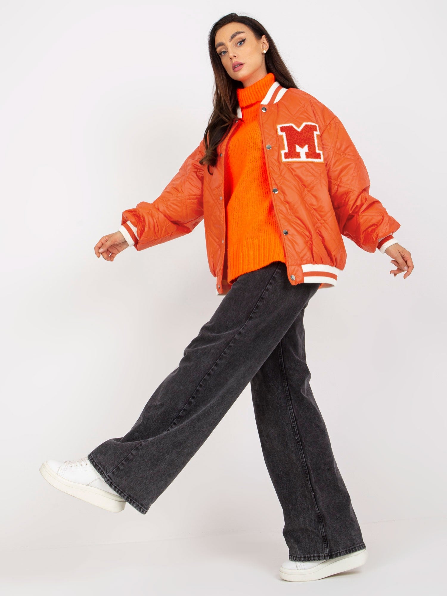 Pomarańczowa pikowana kurtka bomber z naszywką .