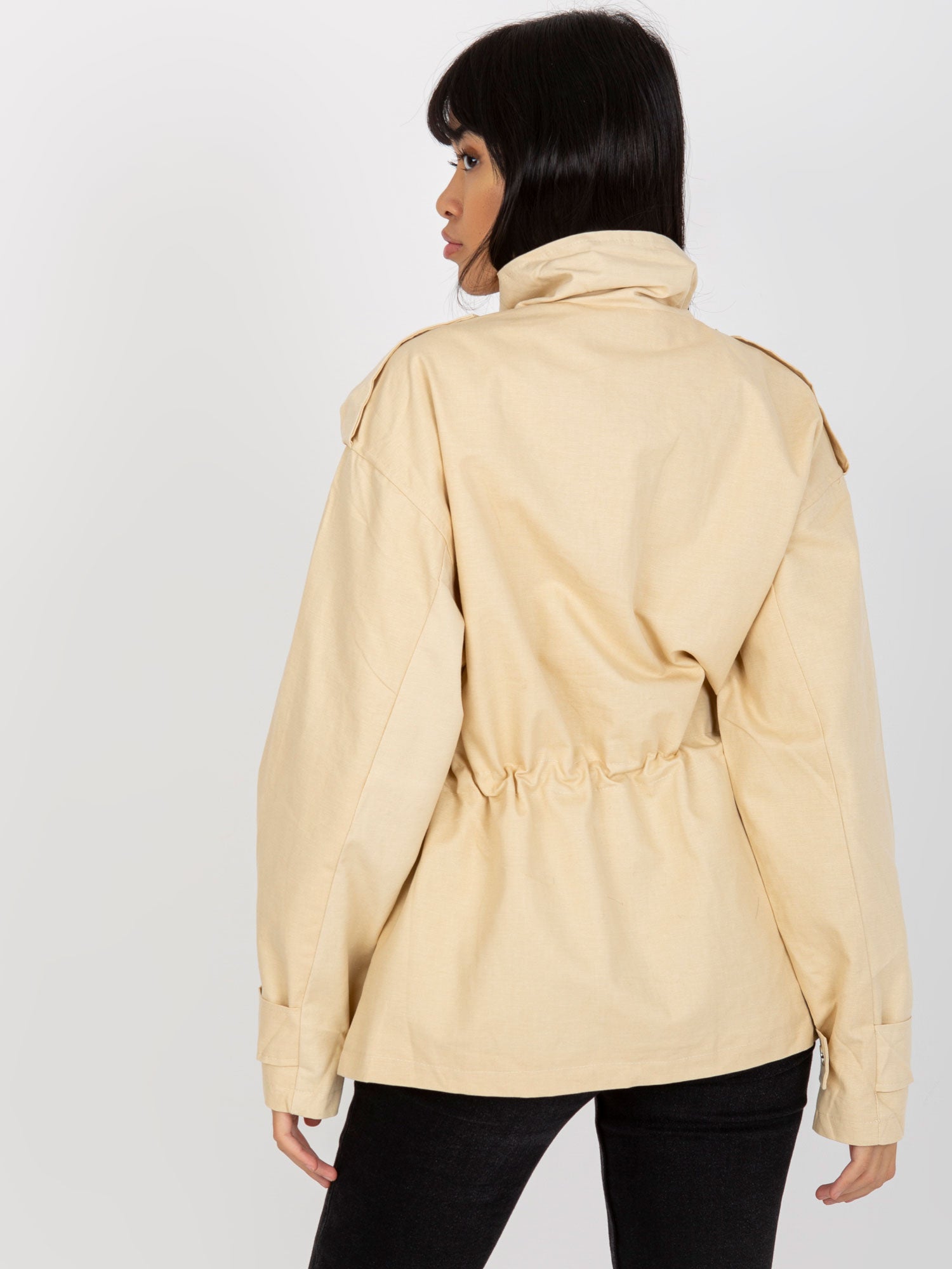 Jasnobeżowa bawełniana kurtka przejściowa ze ściągaczami .